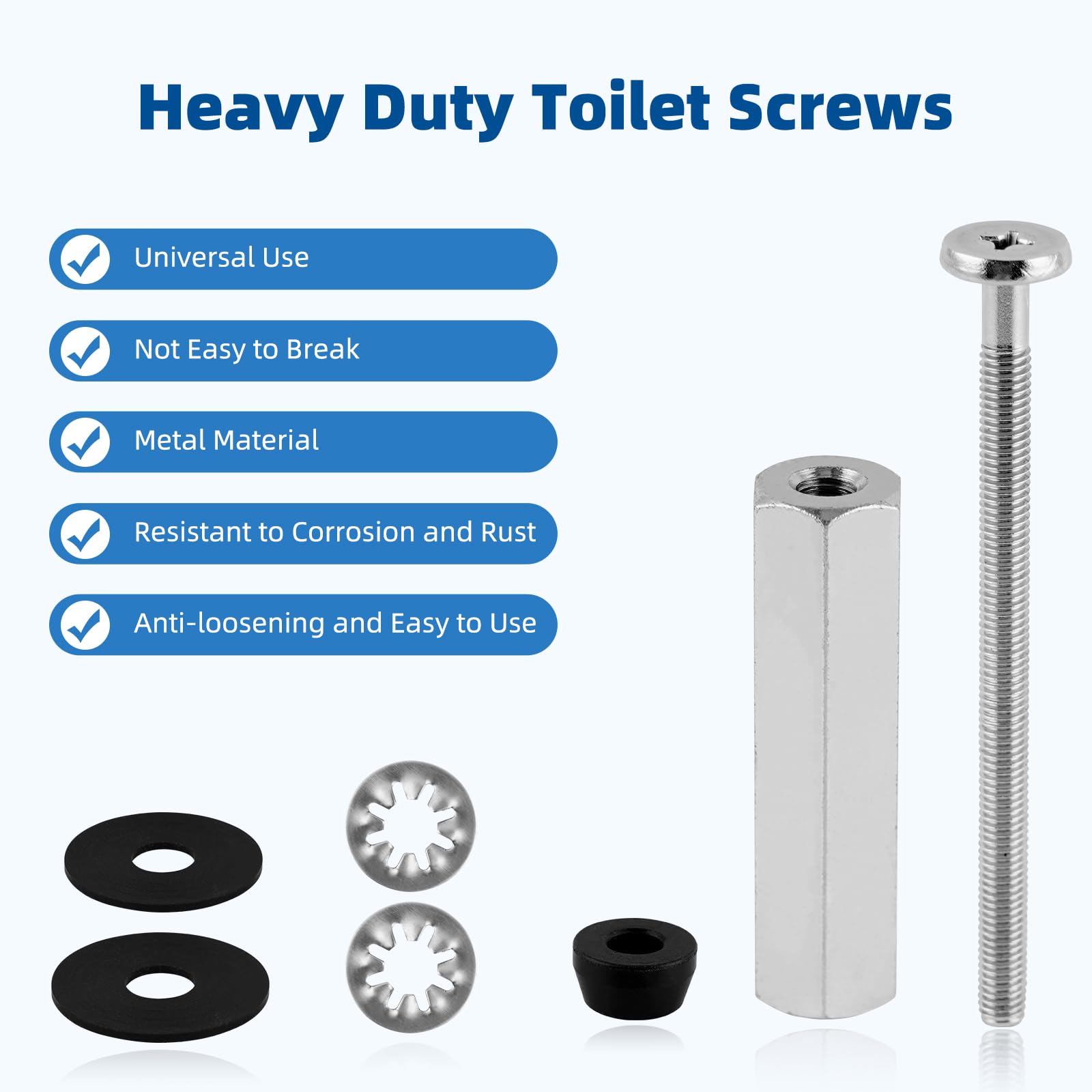 Metal Toilet Seat Bolts Kit: The toilet seat screws replacement kit are made from SUS 304 stainless steel, ensuring durability and resistance to corrosion and rust. The stainless steel washers and downlock nuts are leak-proof and less prone to cracking. The black rubber gaskets provide long-lasting sealing performance