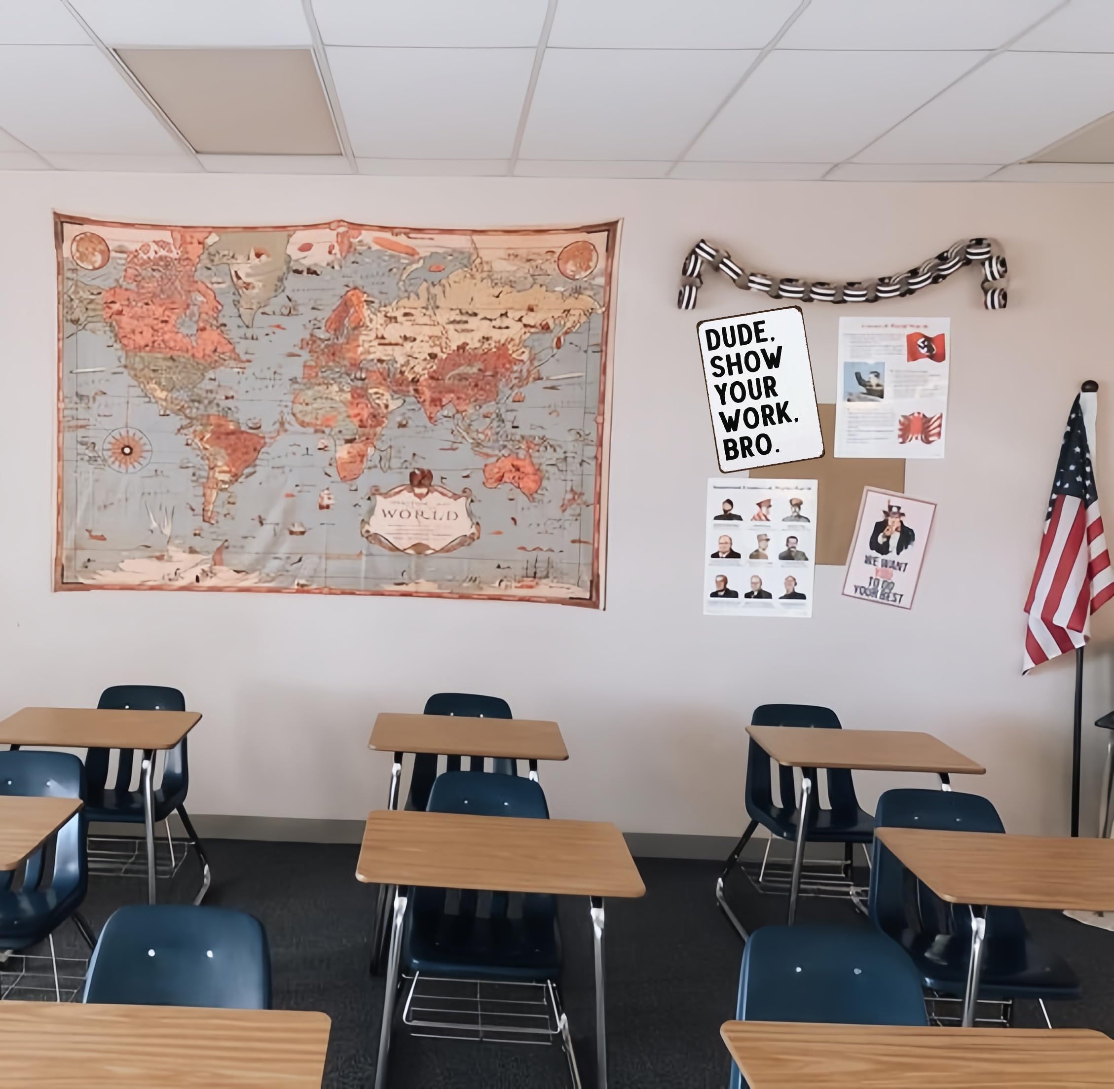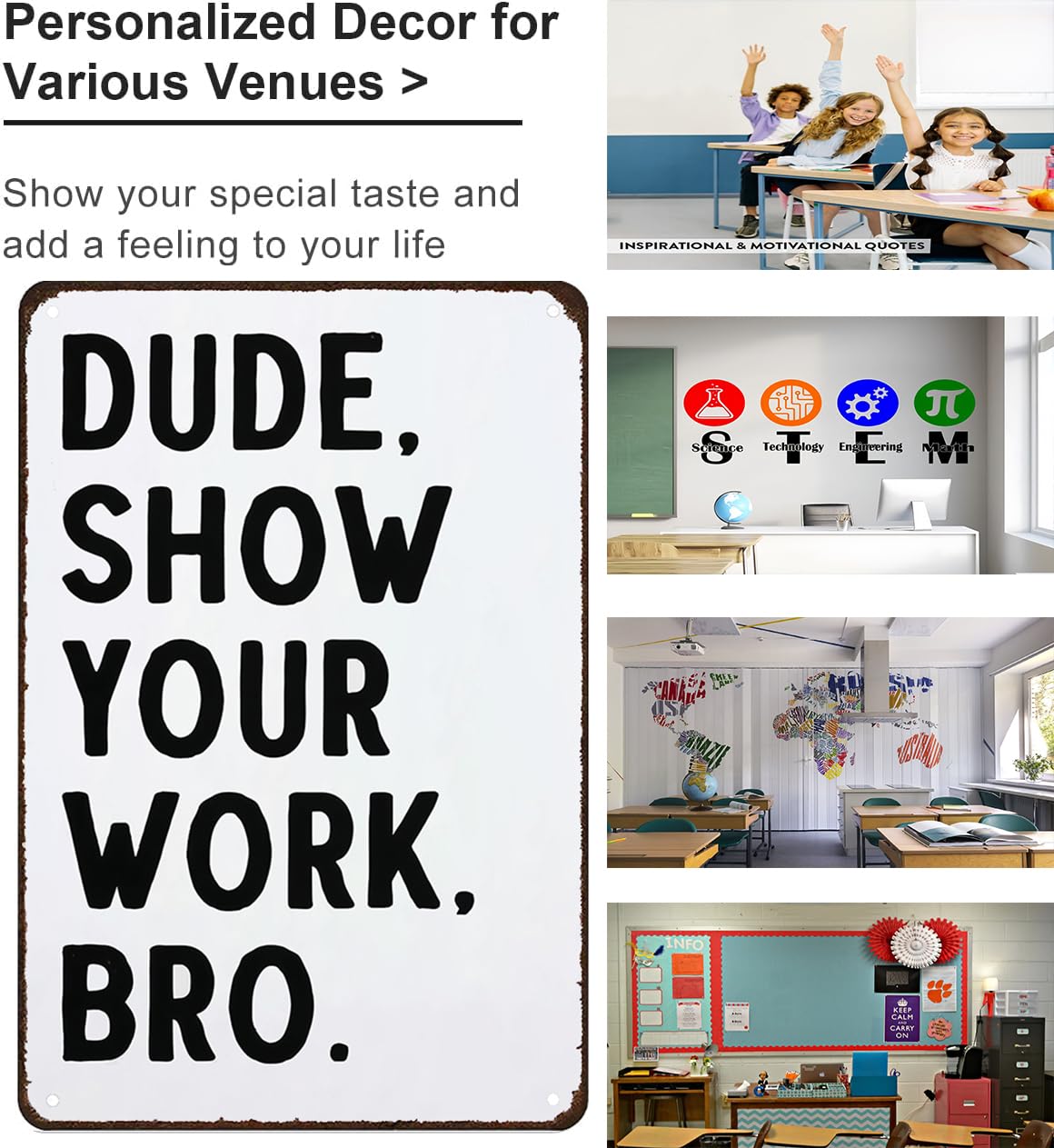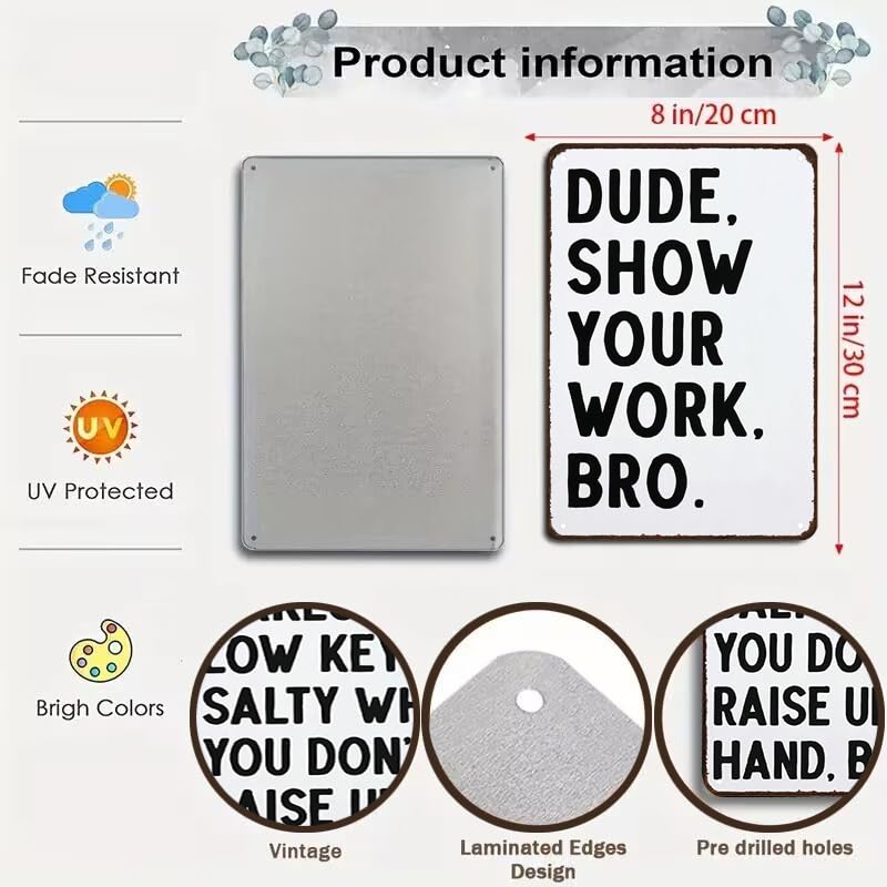 Funny Classroom Decor: Add a humorous touch to your classroom or study room with this "Show Your Work" tin sign, perfect for math, English, science, and history classes.