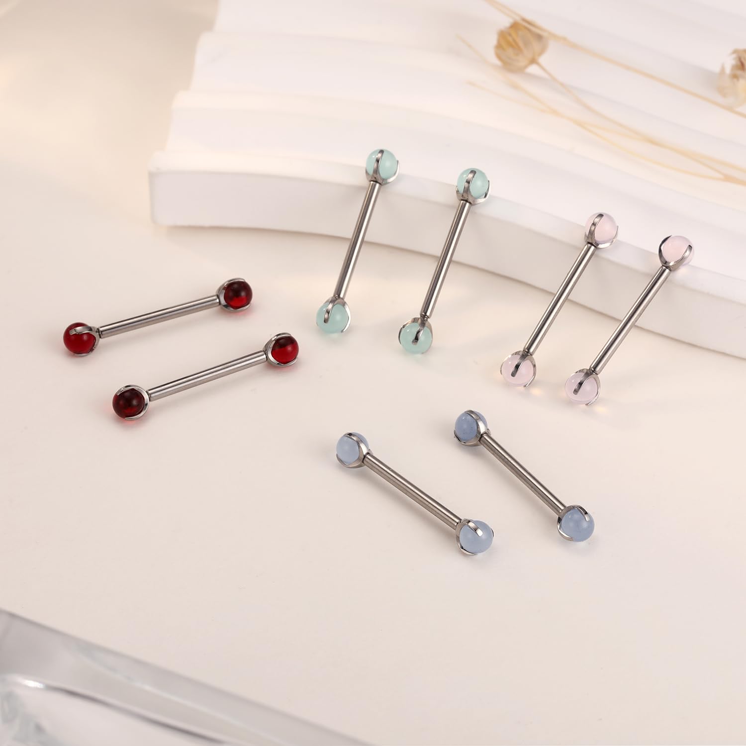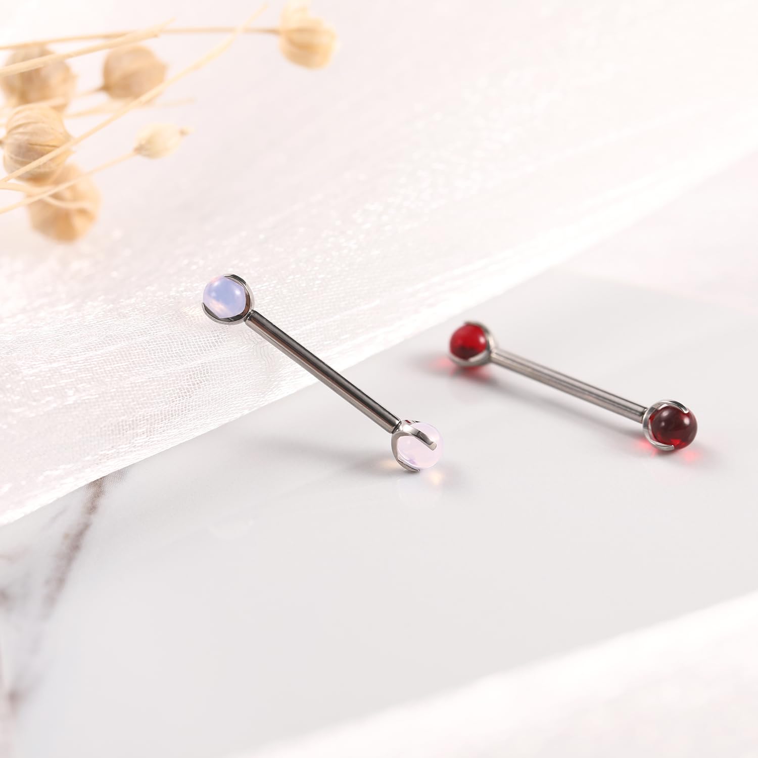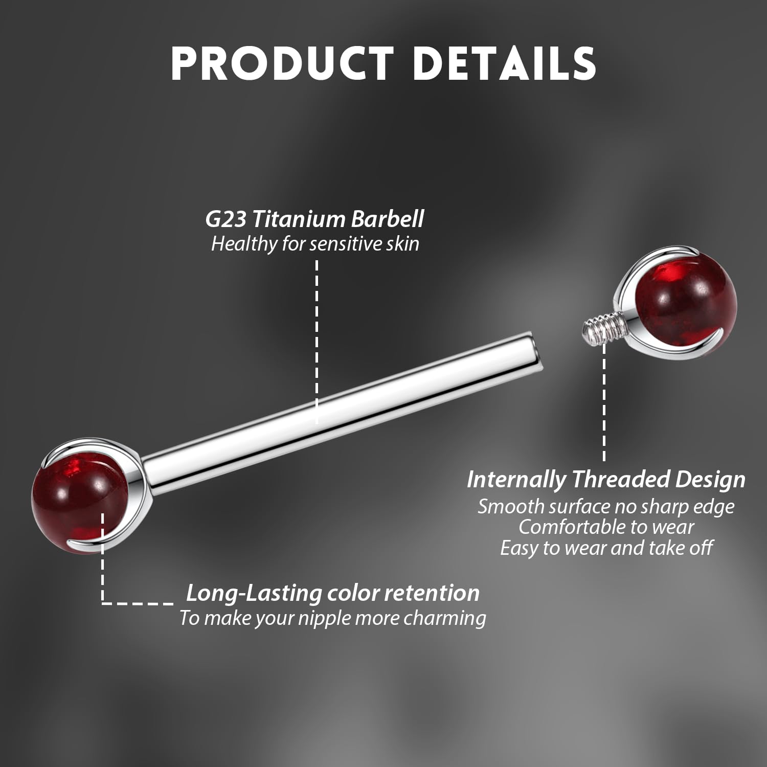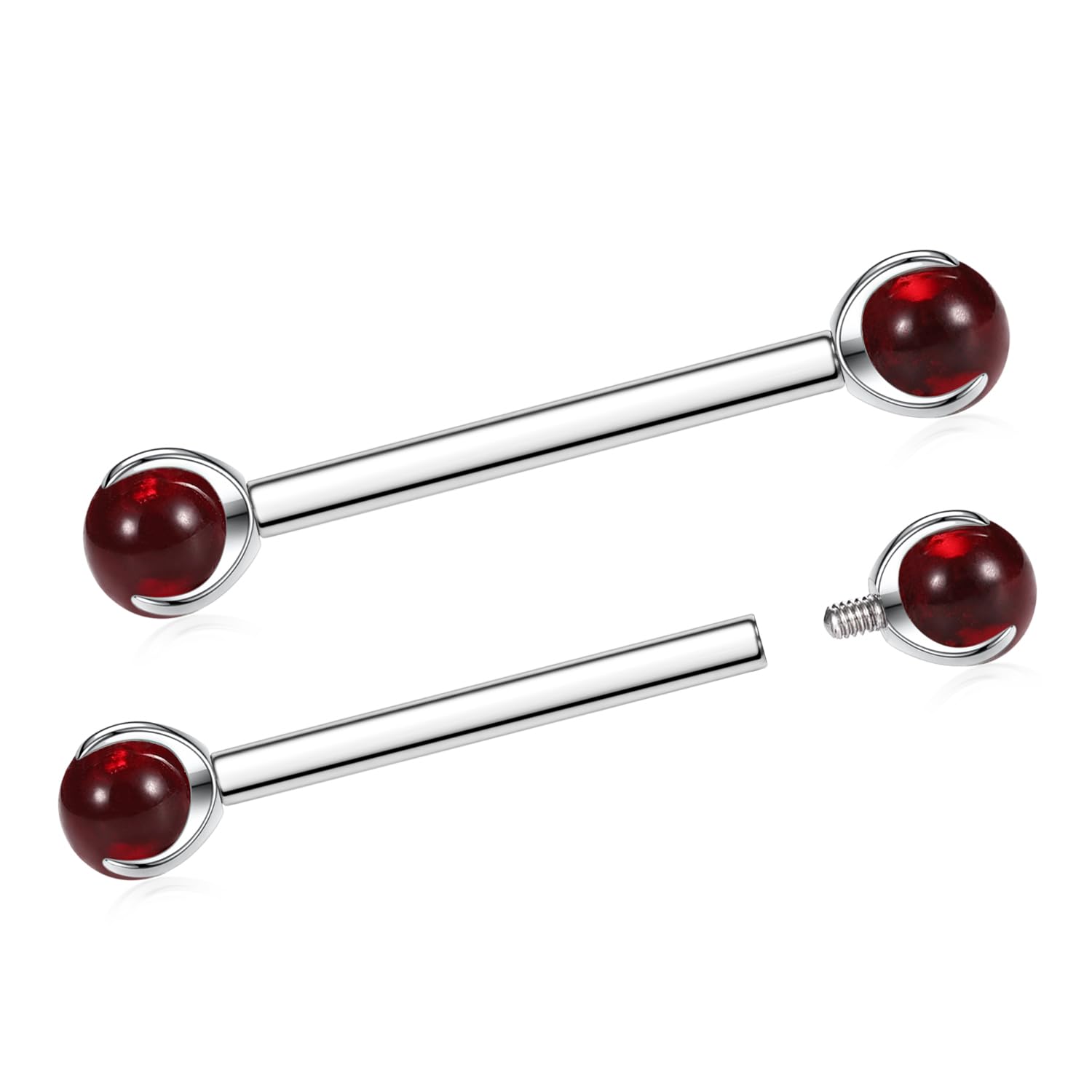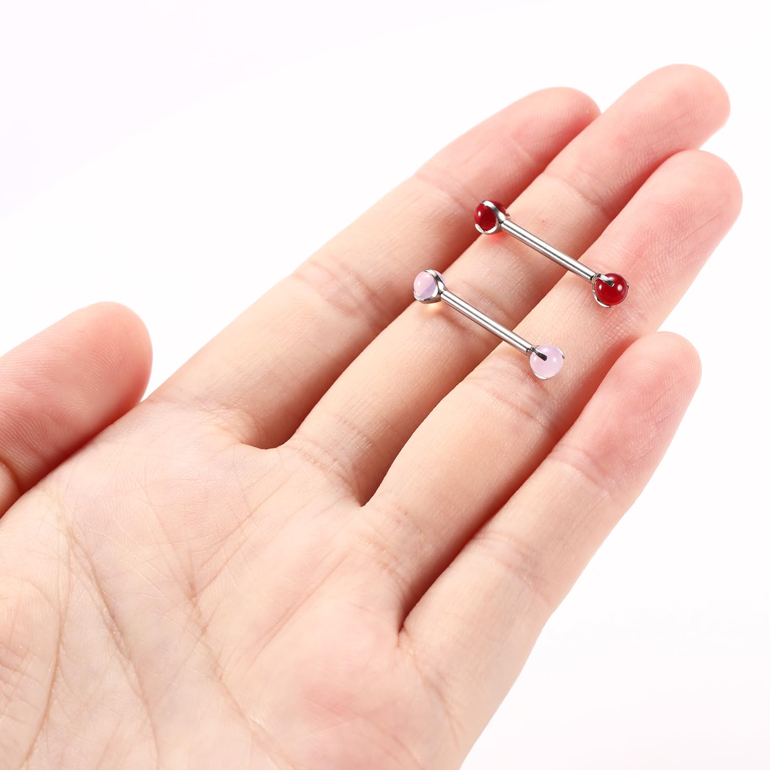 Attractive Style: The nipple ring with shiny cute red imitation jade on both side,what's more both side can be push back,make your nipple piercing more attractive.