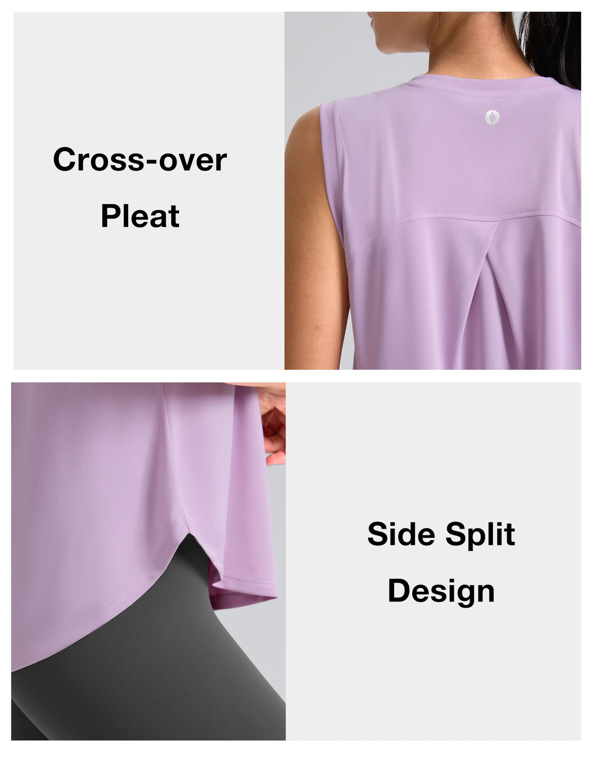 Back Cross-over Pleat: Our athletic tank drapes beautifully thanks to the cross-over pleat at back yoke. The crossing detail is cute and flattering, engineered to keep the top from clinging to your sweaty body while running.