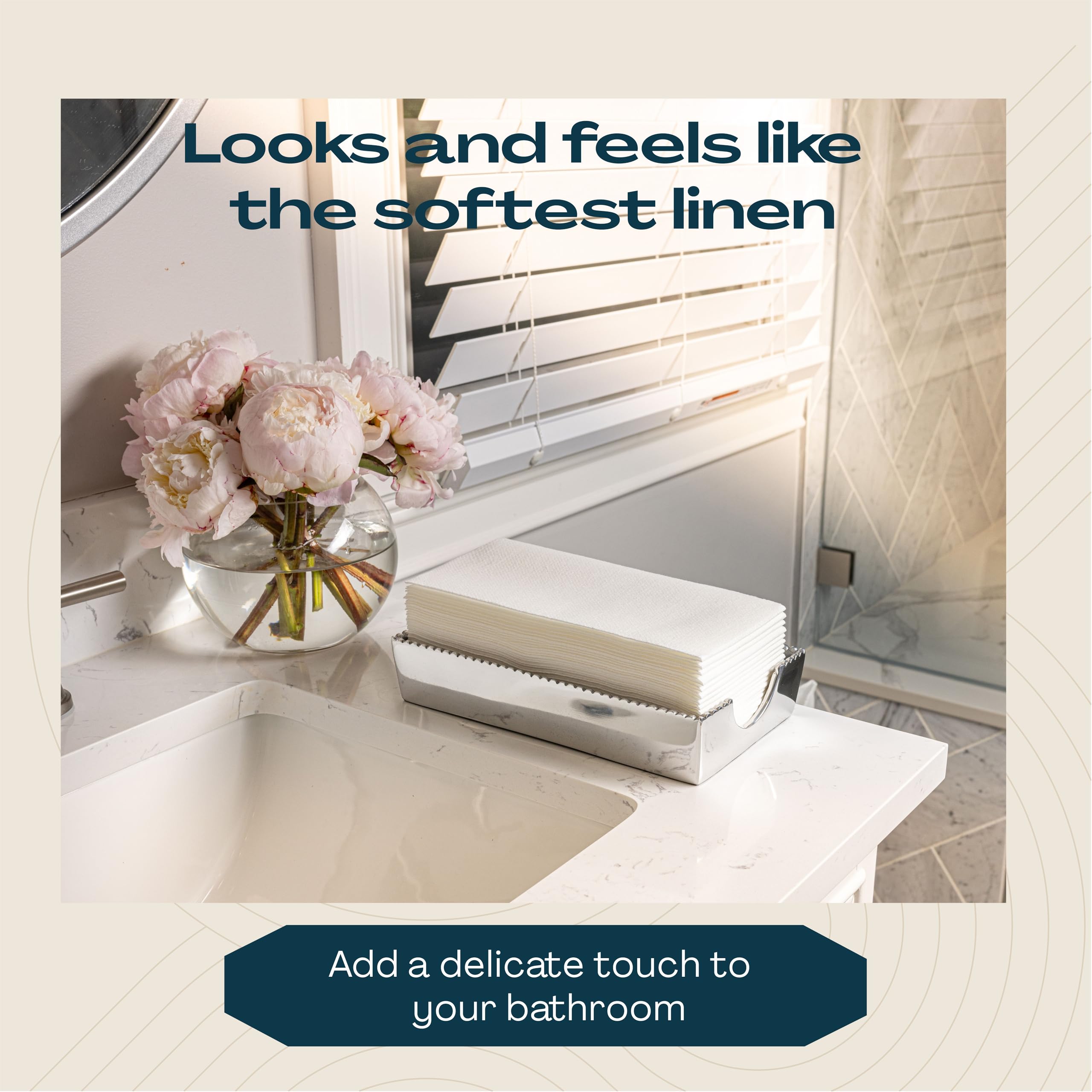 TOUCH-OF-LINEN HAND TOWELS: These Paper napkins have the look and feel of cloth linen, but with the cost effectiveness and disposable convenience of disposable napkins.