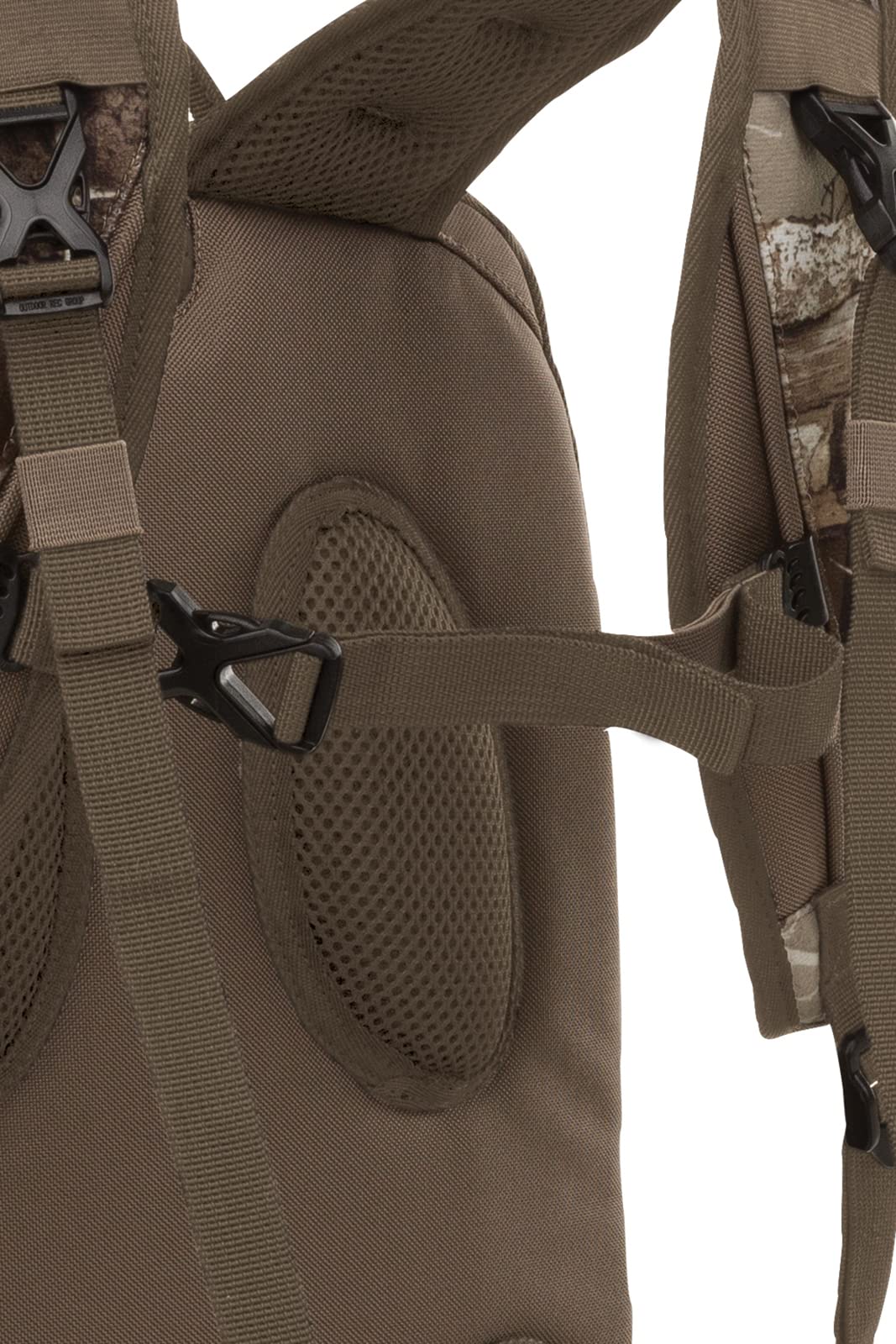 Description Upgrade your hunting gear with this Timber hawk Big Basin Daypack. It features a large main compartment and four accessory pockets for additional storage. The Real tree Extra backpack is made with noise-reducing Quiet Cloth and is hydration compatible (reservoir not included). It also has left- and right-side bottle pouches and webbed accessory loops. The high-density, breathable foam-padded back and shoulder straps provide added comfort. This model includes a Hawkeye Bingo strap system and a sternum strap.