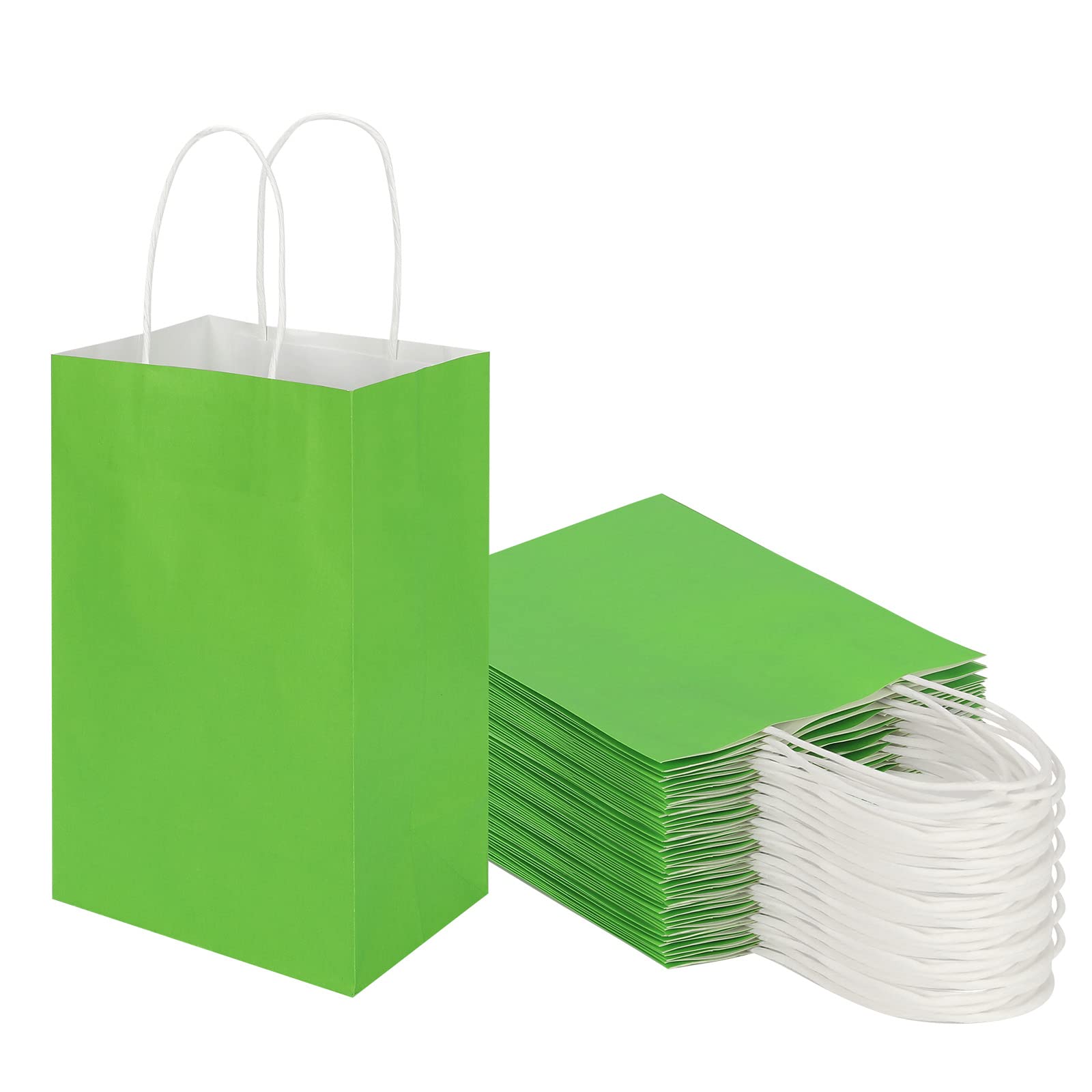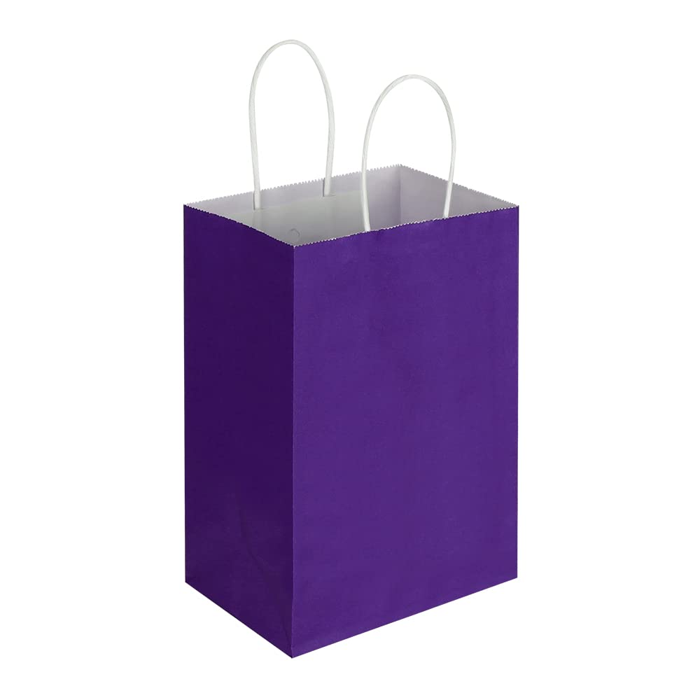 Oikss 50 Pack 5.25x3.25x8.25 Inch Small Purple Kraft Paper Bags with Handles Bulk for Birthday Wedding Party Favors Grocery Retail Shopping Business Goody Craft Gift Bags Cub Sacks, 50 Count