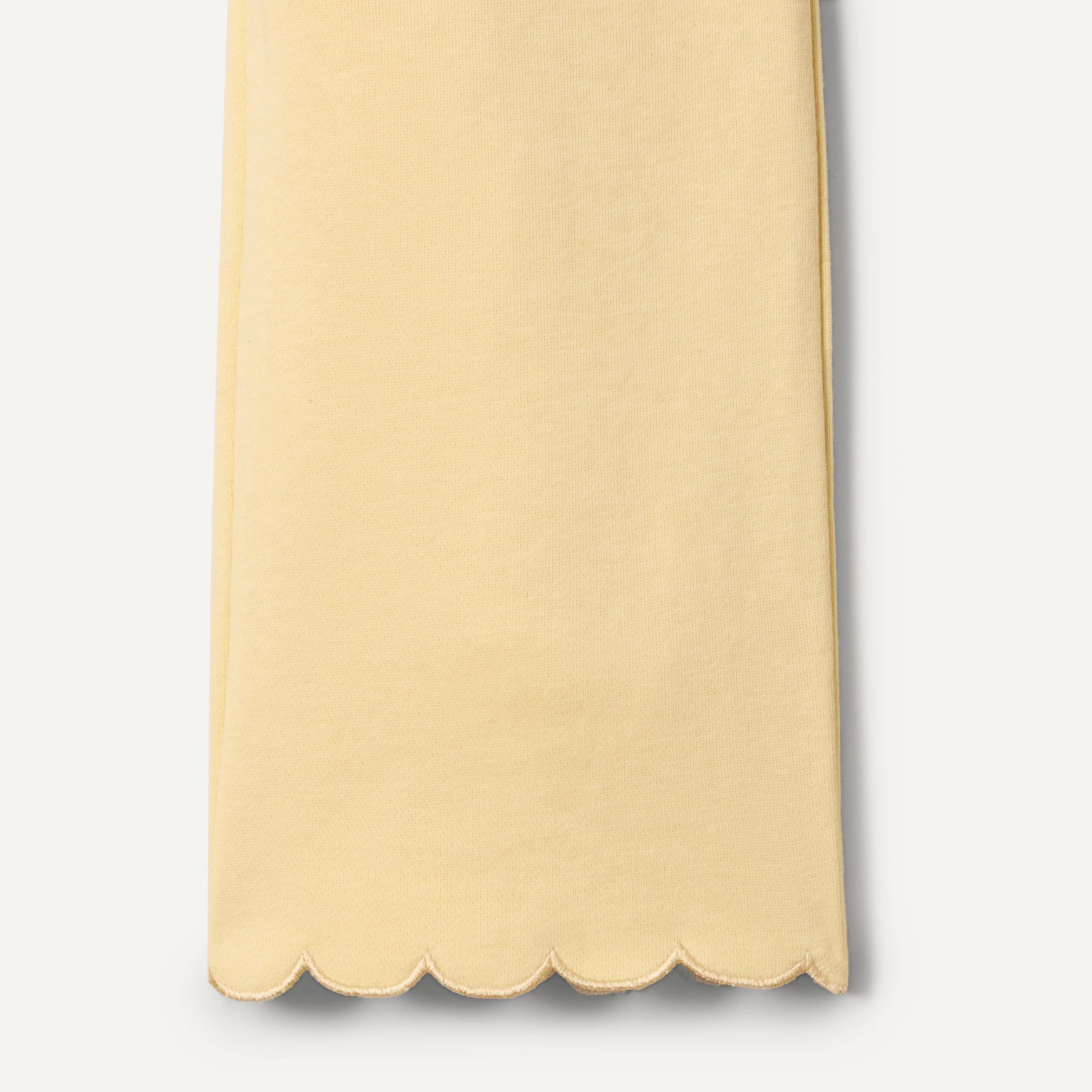 DETAILS: Embroidered scalloped edge, ribbed neckline and cuffs and easy pull-on waist with pockets
