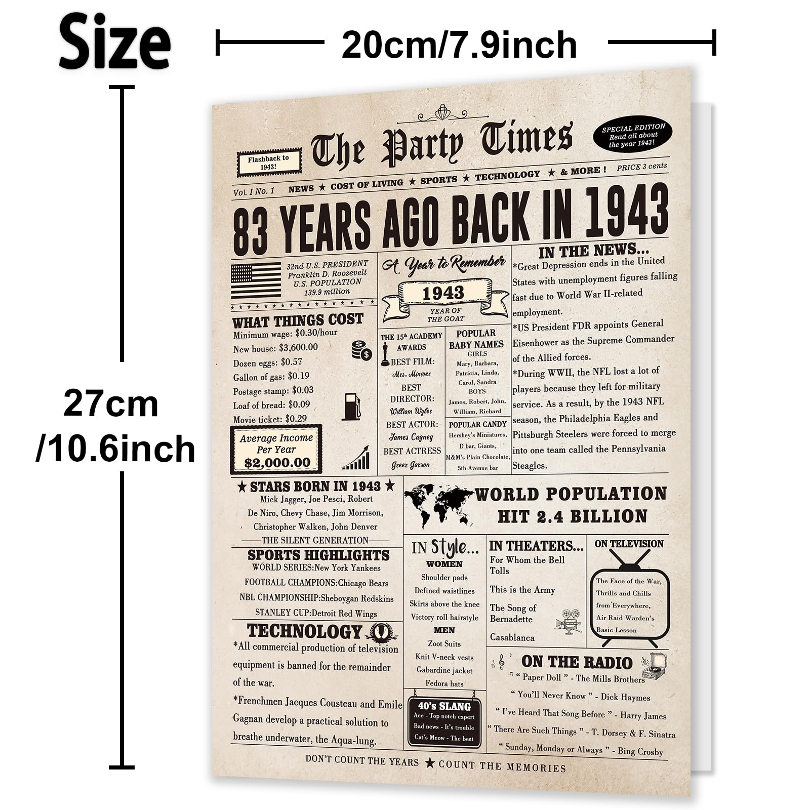 【Product Size】A 10.6 x 7.9 inches 83 years old birthday card stands out for its oversized size. It comes with an envelope for easy mailing or gifting