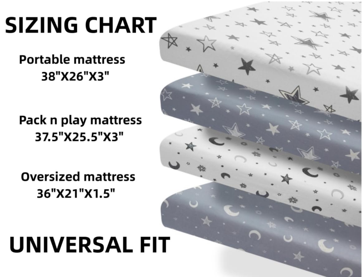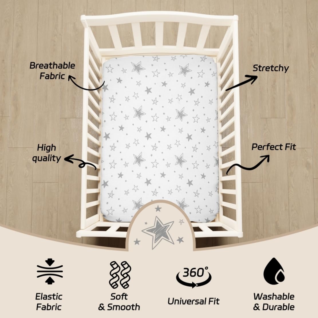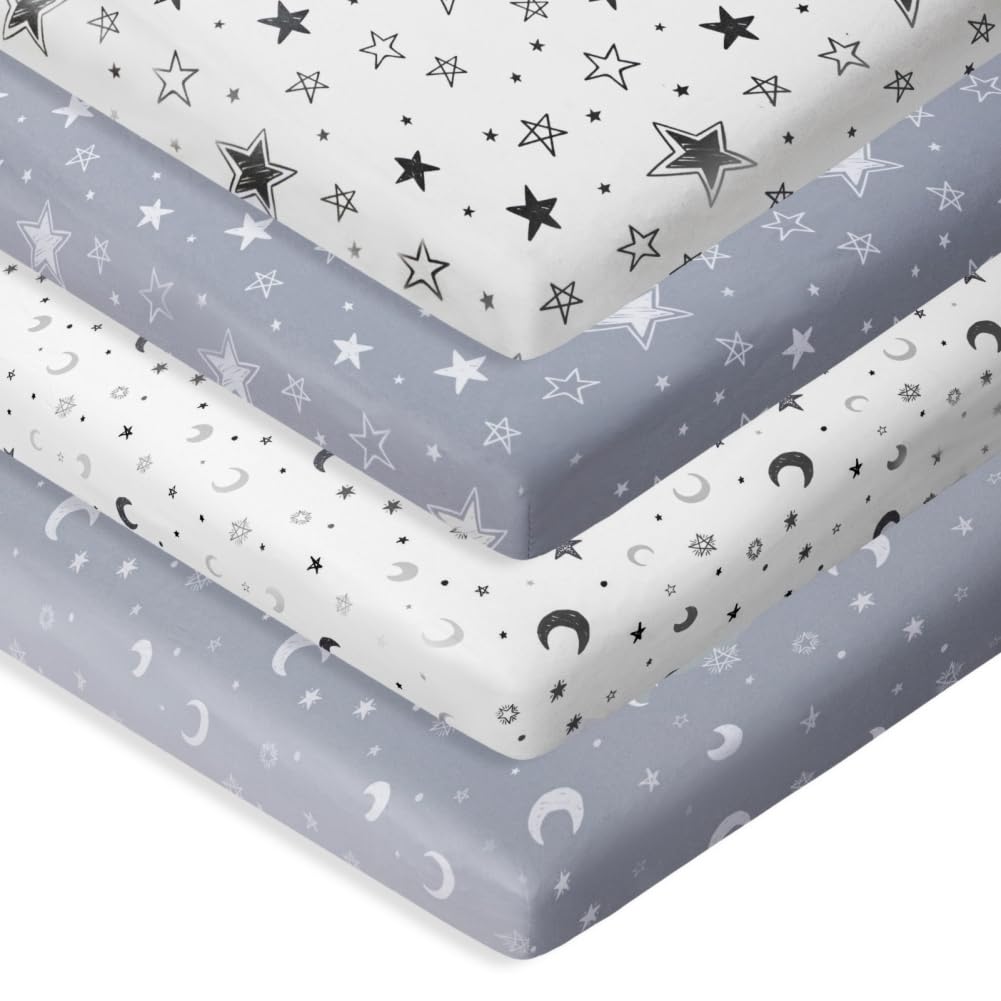 4 Pack Star and Moon Nursery Sheets Neutral Unisex Fitted Baby Sheets