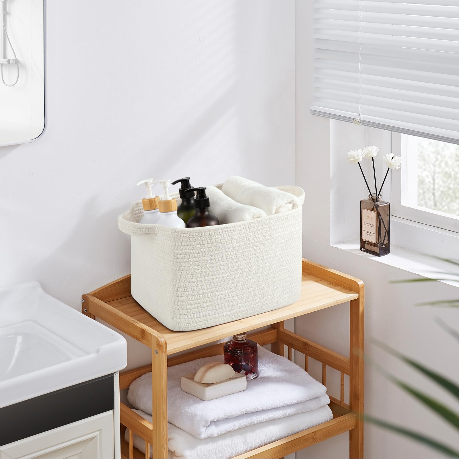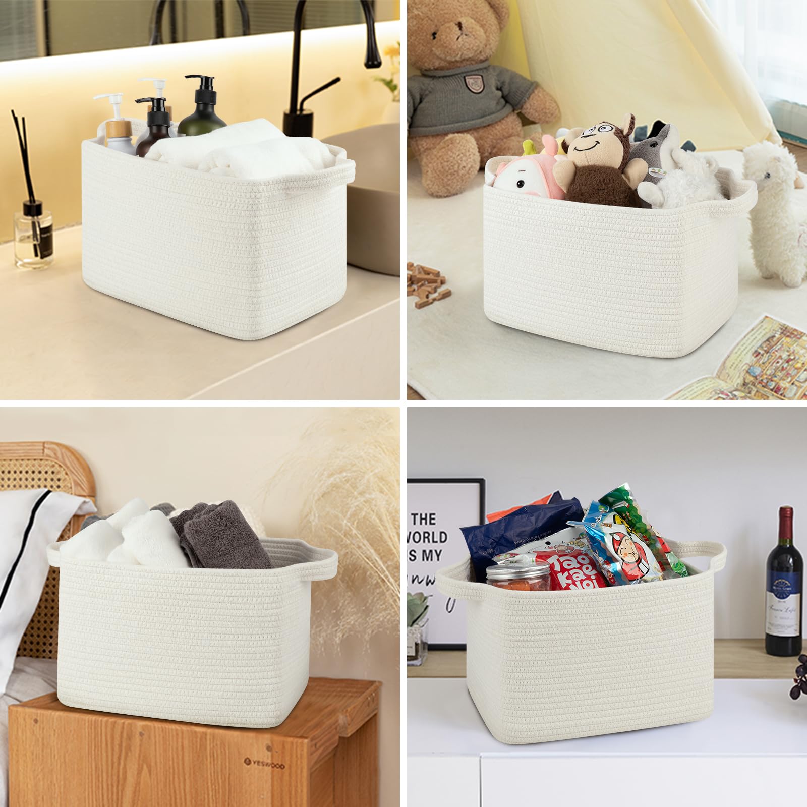 Portable & Flexible: Small baskets for organizing with separate handles for easy portability and storage. Made with flexible and thick cotton rope, our baskets are designed to be strong and long-lasting. Keeping your belongings organized and easily accessible at all times