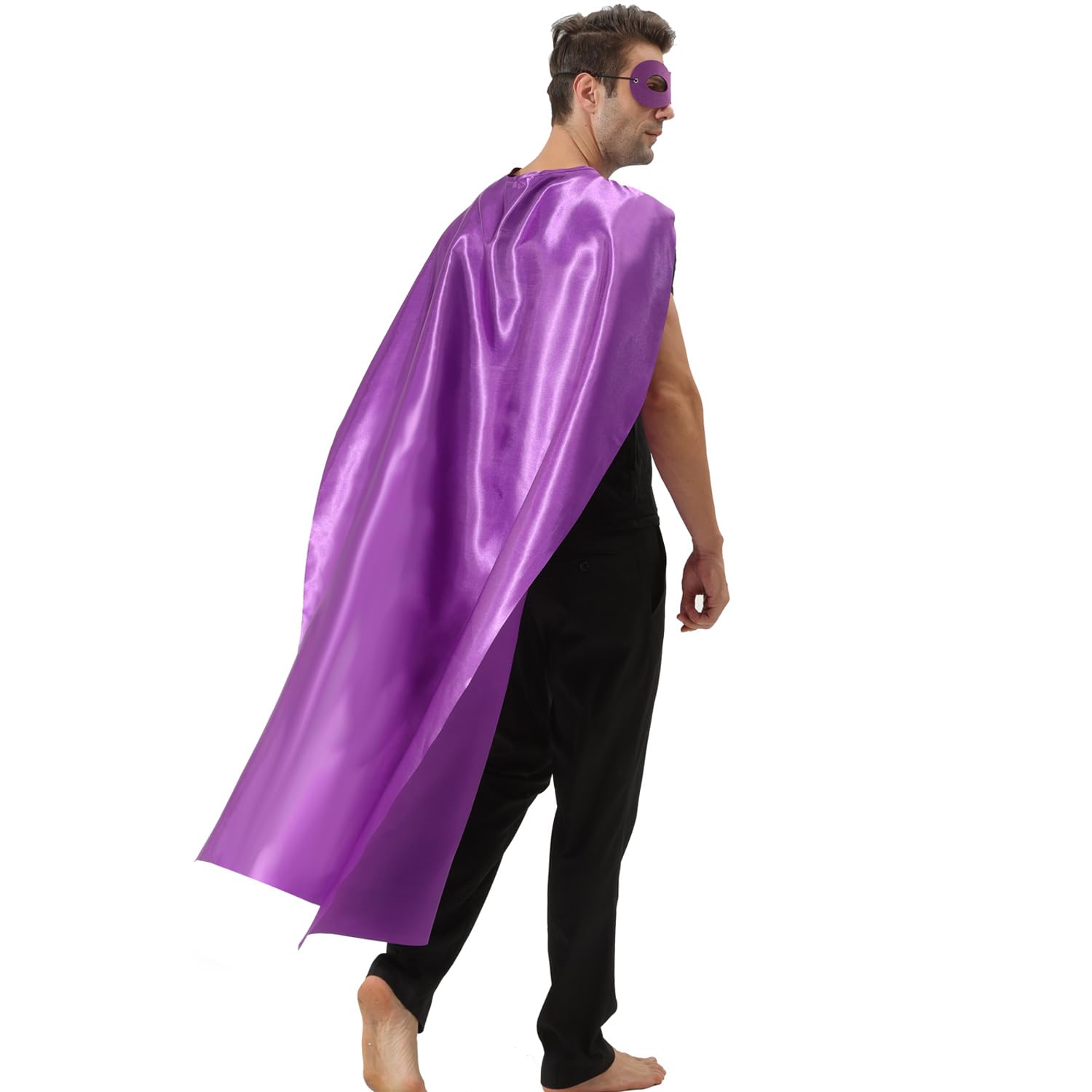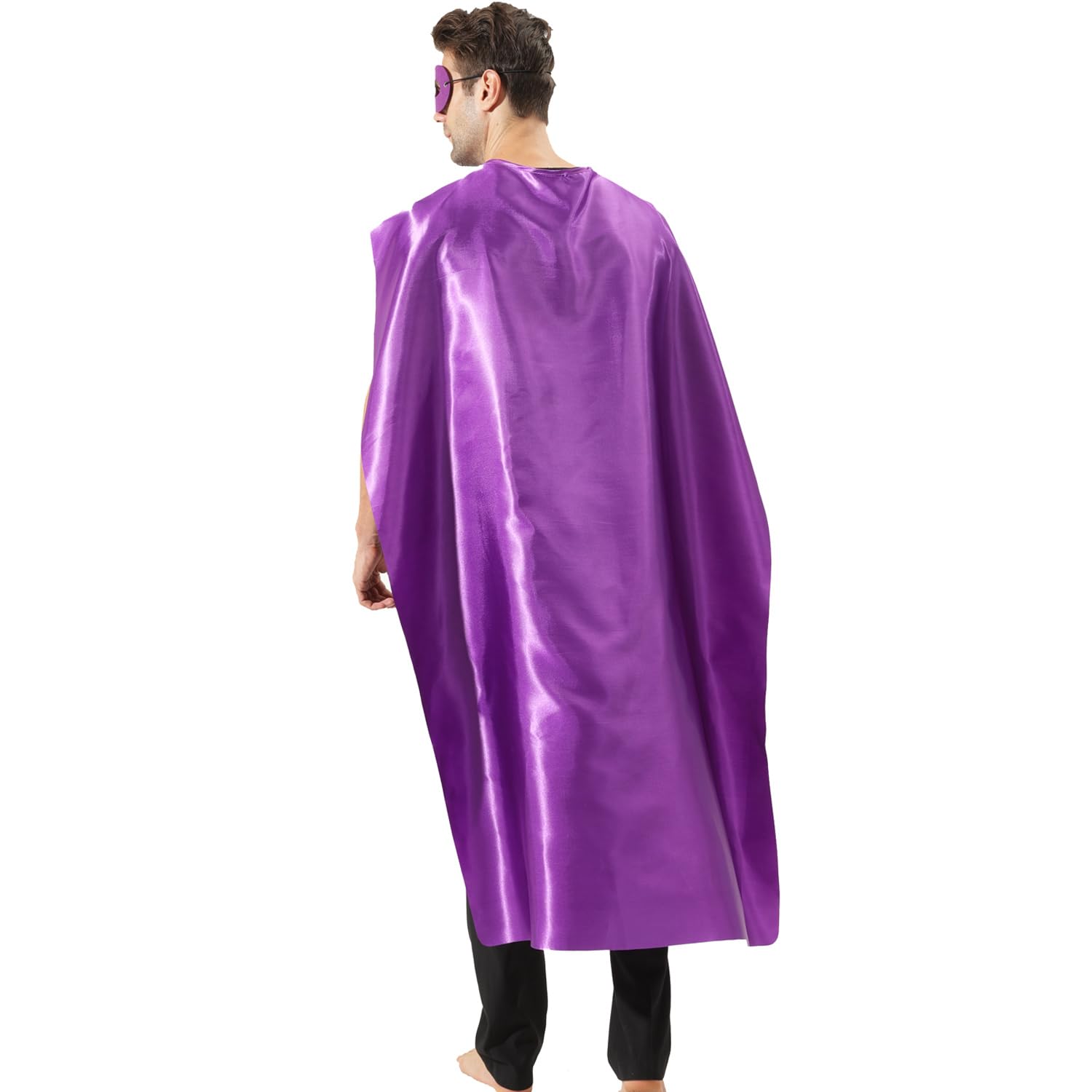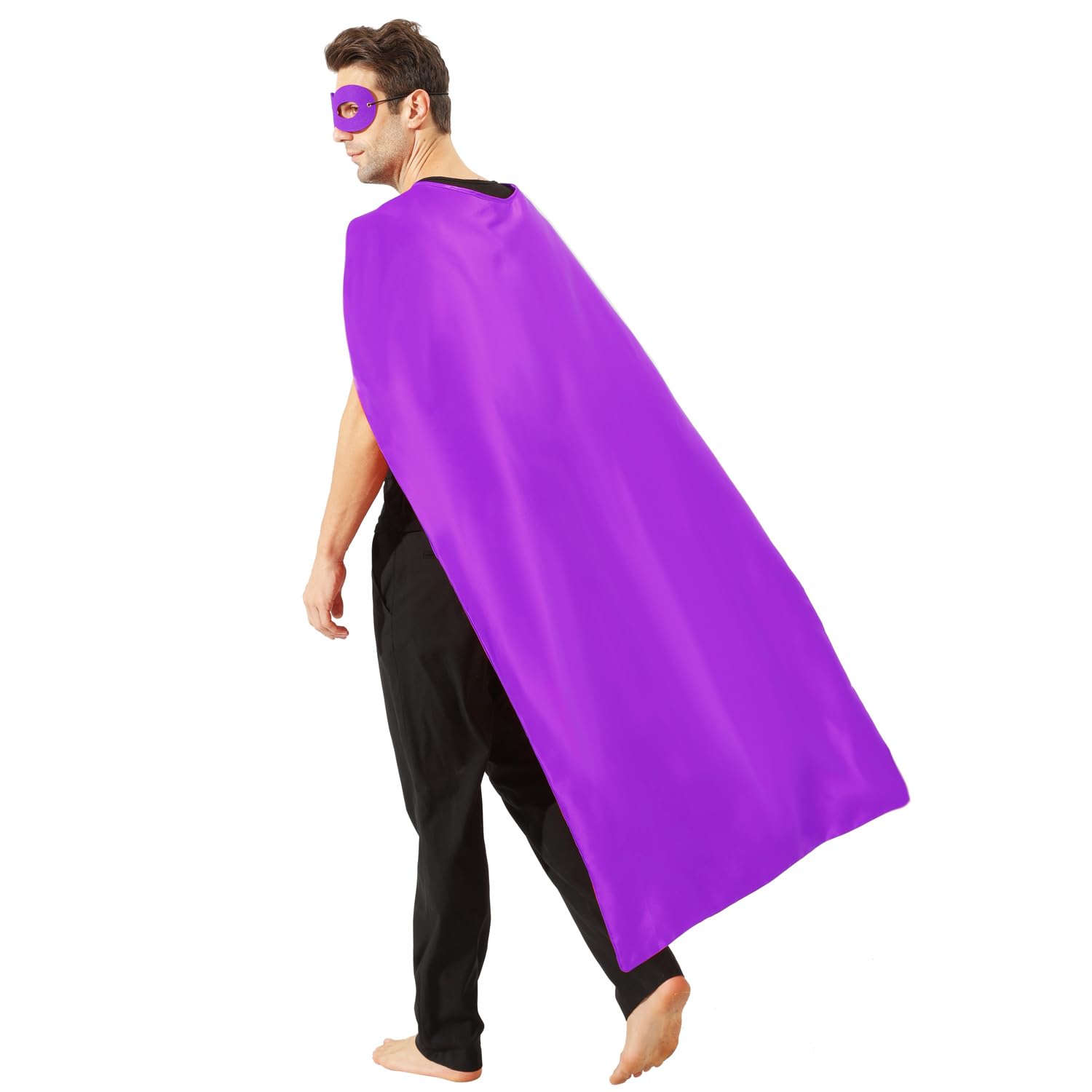 SizeοΌLength 57 x Width 38 inch for capes. Our superhero capes and masks for adult bulk pack, are designed in perfect size after plenty of test; We have round neck hole, which fits better than simply sewed straight fabric with elastic. You can tie a bow with the cord to fit easily. The masks ensure a snug with elastic but not too tight fit.