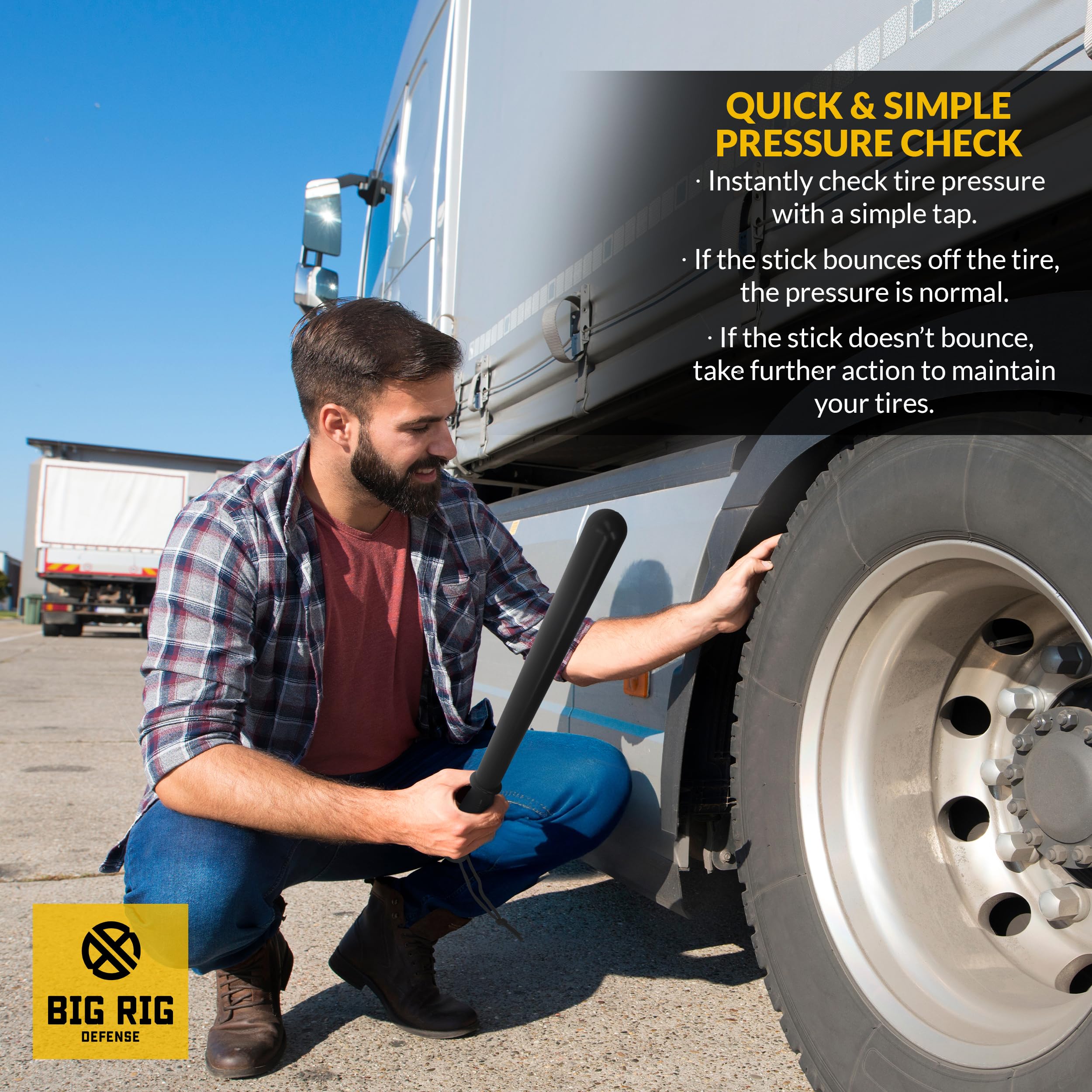 Quick & Effective Tire Check – Save time on the road using the tire thumper self defense bat with a quick whack. Listen for the solid thump for peace of mind on the go, ensuring your truck tires are in top condition and ready for the miles ahead.