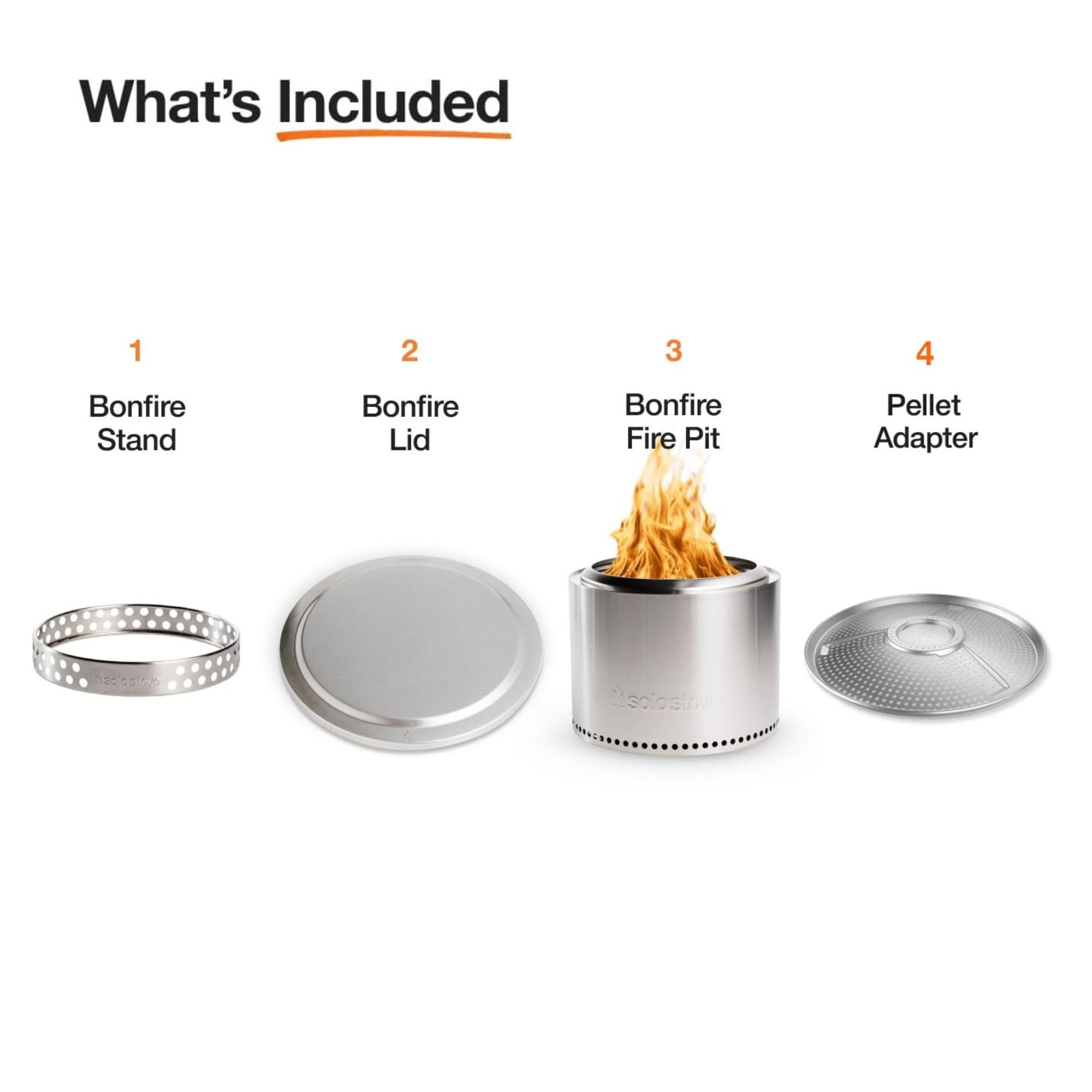 WHAT’S IN THE BUNDLE: This Bonfire bundle includes everything you need for an unforgettable outdoor fire experience: the Bonfire 2.0 Smokeless Fire Pit for powerful, low-smoke flames; a Base Plate and Removable Ash Pan for easy cleanup; a Bonfire Lid for safe ash containment; a Bonfire Stand to protect surfaces wherever you set up camp; a Premium Carrying Case for effortless portability; and a Pellet Adapter for versatile, efficient fueling on every adventure.