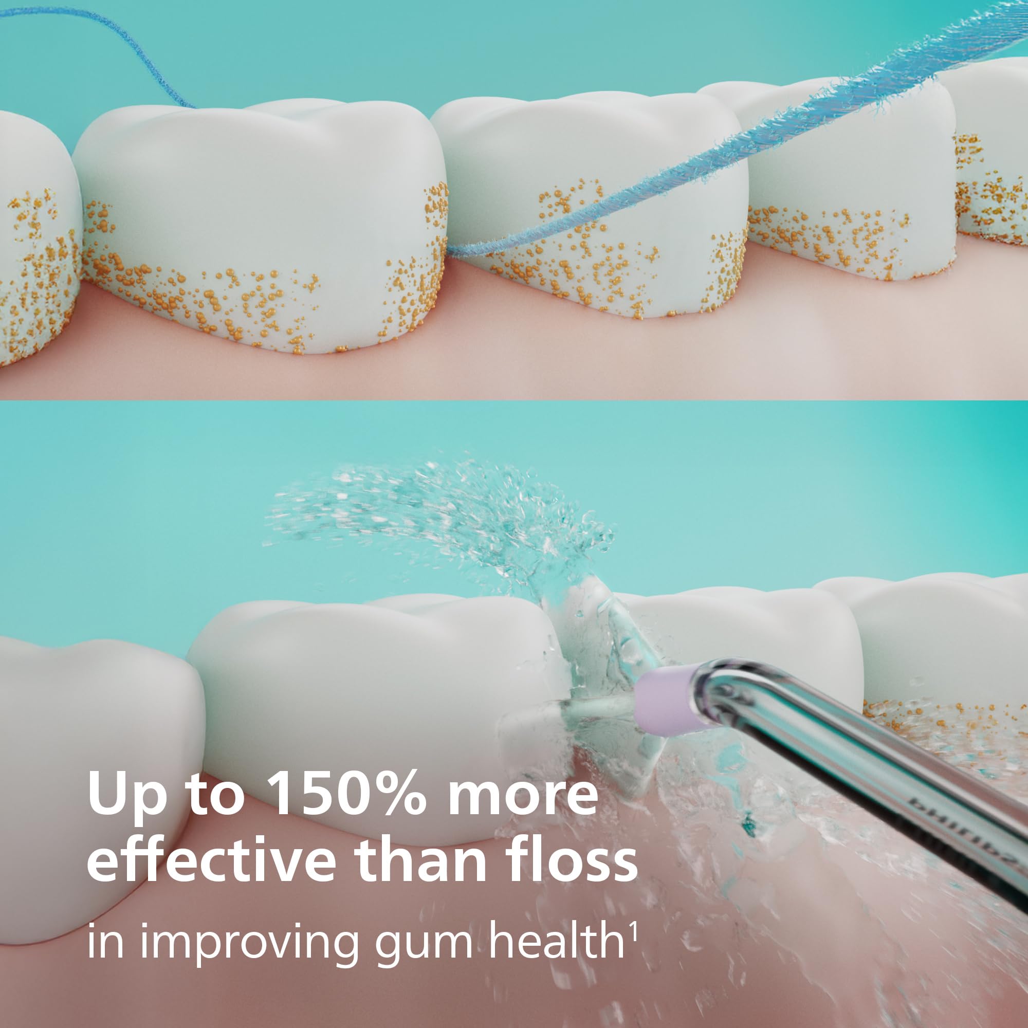 Improve gum health in 2 weeks: Philips Sonicare cordless water flosser is up to 150% more effective than floss in improving gum health¹ ; it also removes up to 99% of plaque from below the gumline²