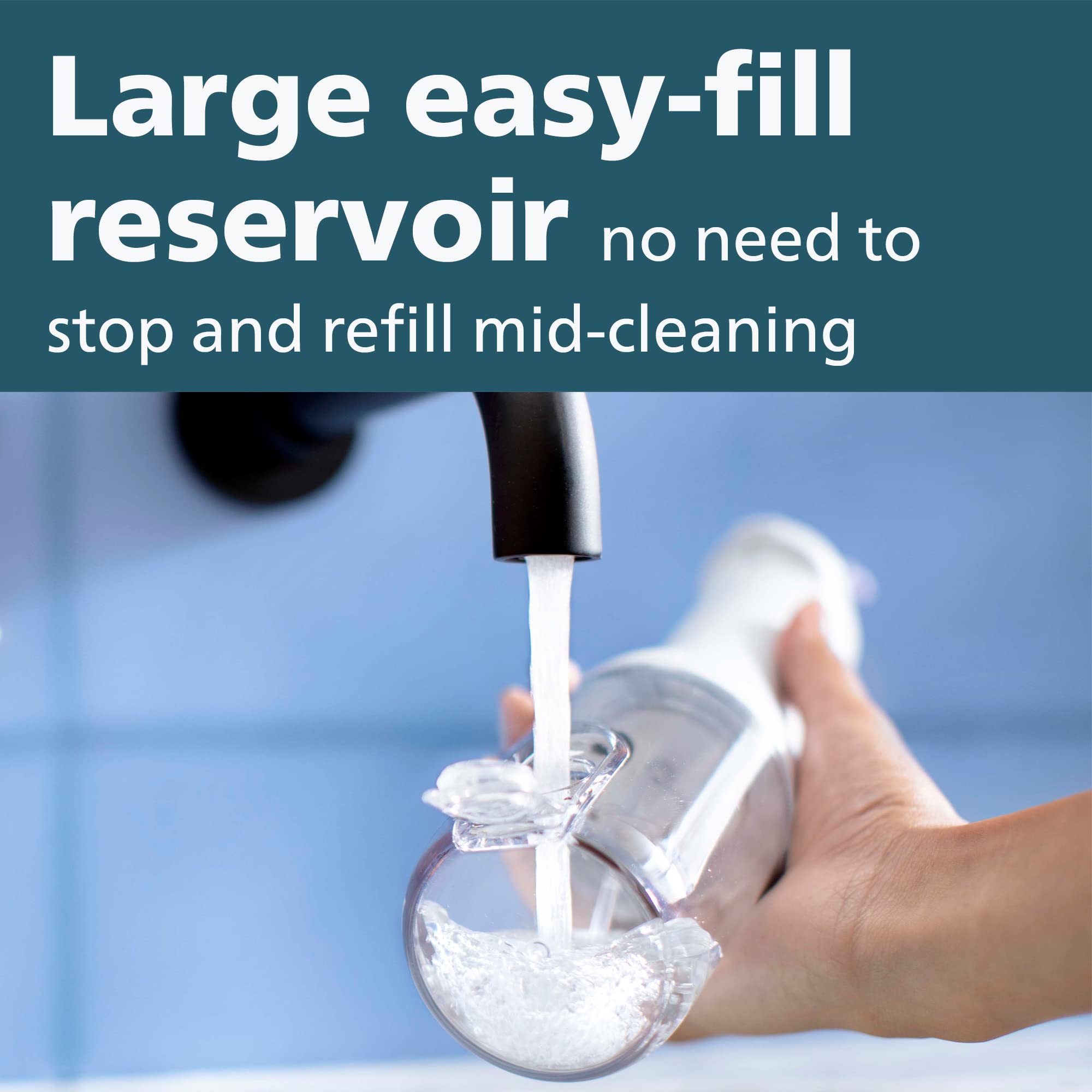 Cordless convenience: this electric flosser is lightweight, portable, and easy to use; reservoir capacity of 8 fl oz holds enough water for a 1-minute clean without refilling