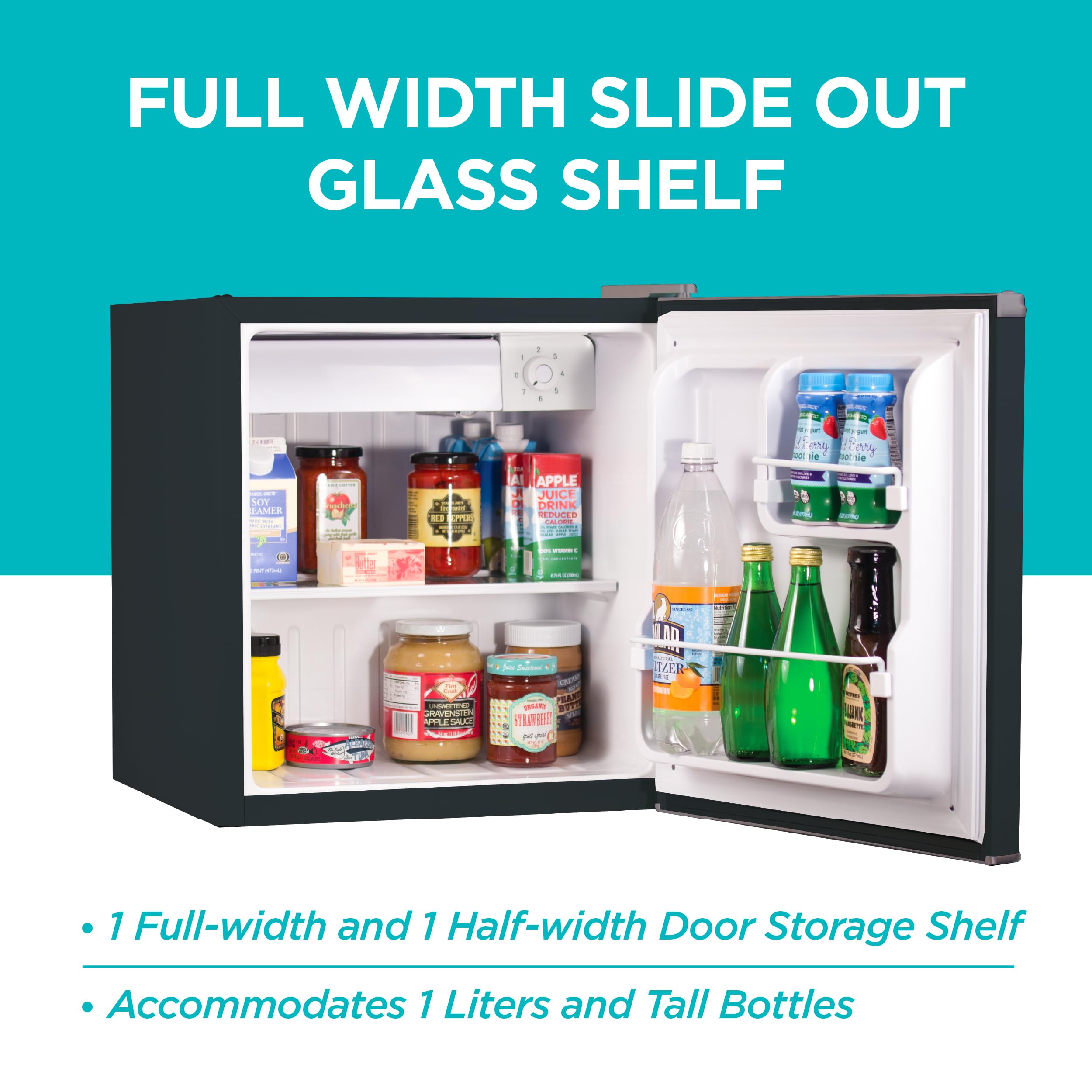 Spacious Capacity: A removable glass refrigerator shelf helps expand storage space while a full and half-width door storage bin accommodates cans and small containers or 1-liter or taller bottles