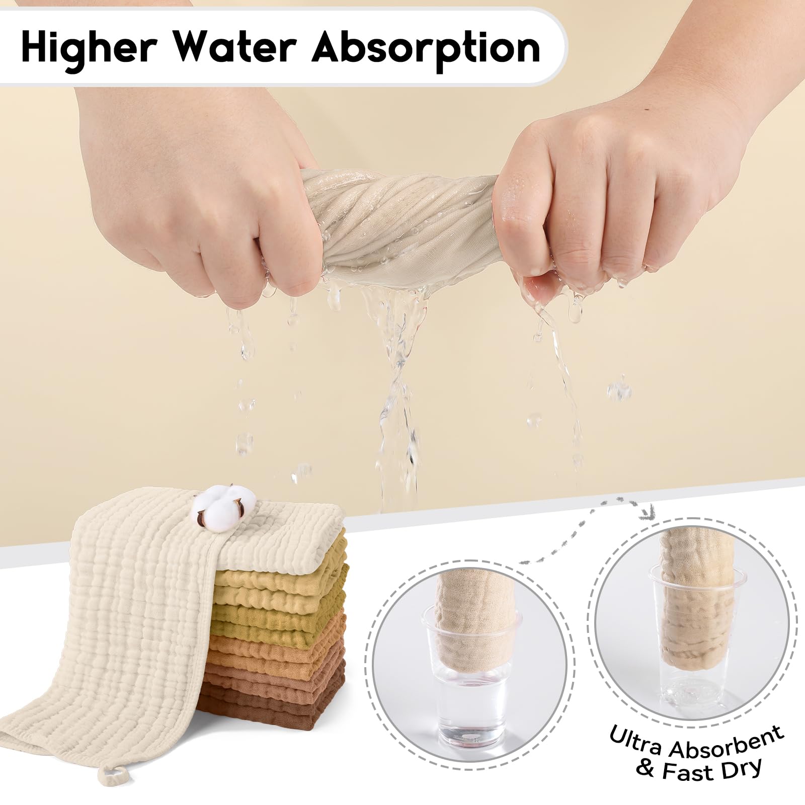 ❤Excellent Absorbent: Featuring 6 layers of absorbent muslin and fluffy structure design, our burping cloths for babies provide maximum absorption with tendor touch, works well to protect your teething baby from all dribble and spit ups soaking their clothes. Large 20''X10'' size provides maximum coverage and extra layering adds durability, making them ideal for use in any season.