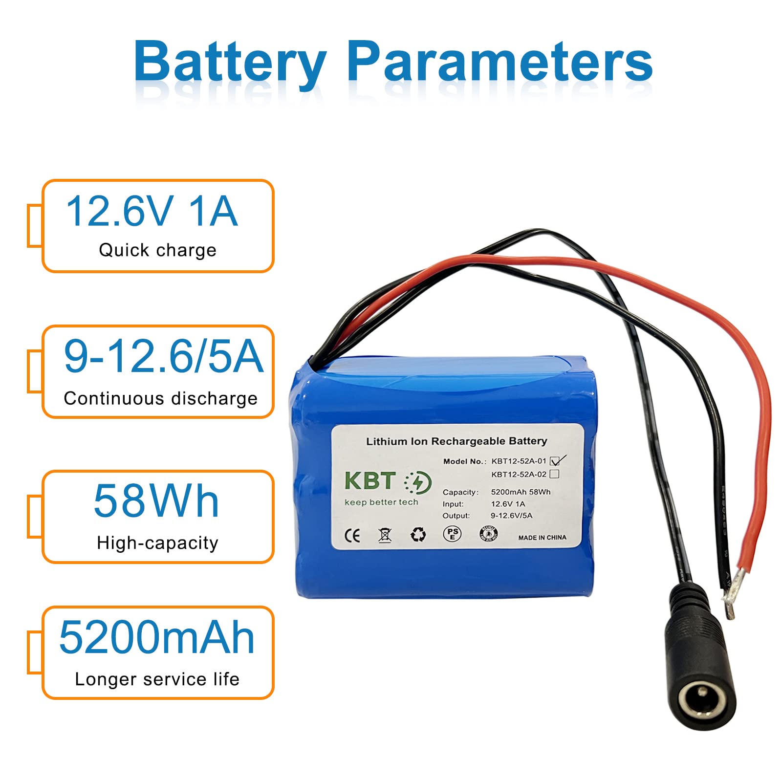 Long using life: this 12V battery pack build with lithium-ion battery, no memory effect, is of over 800 times charge-discharge cycles.