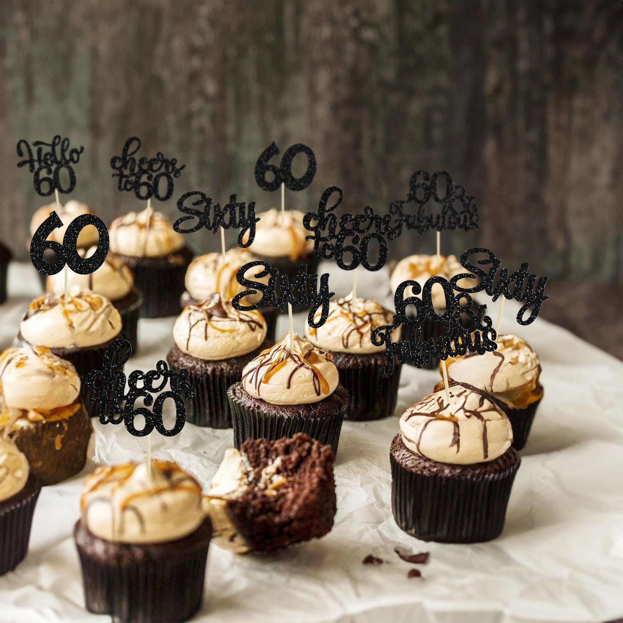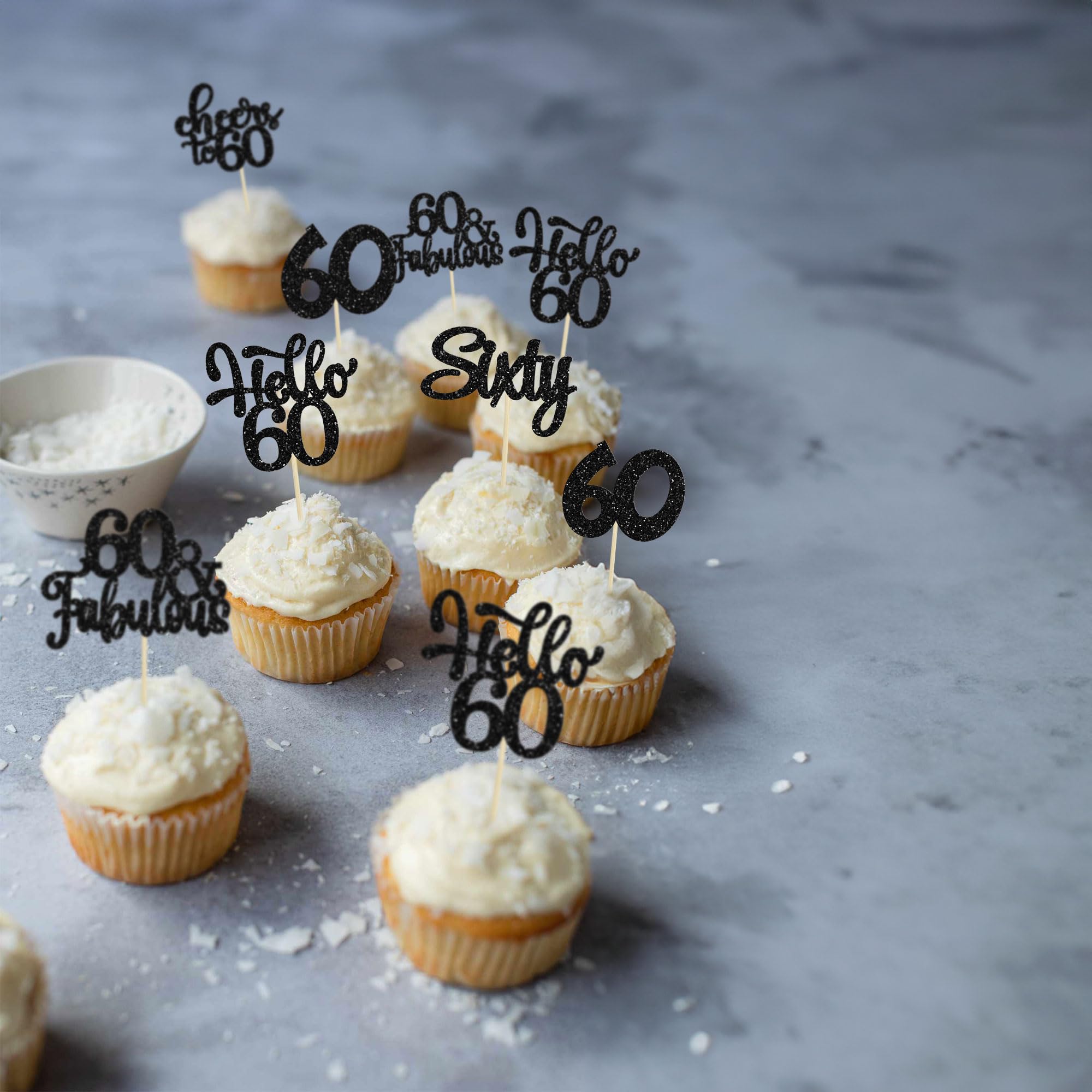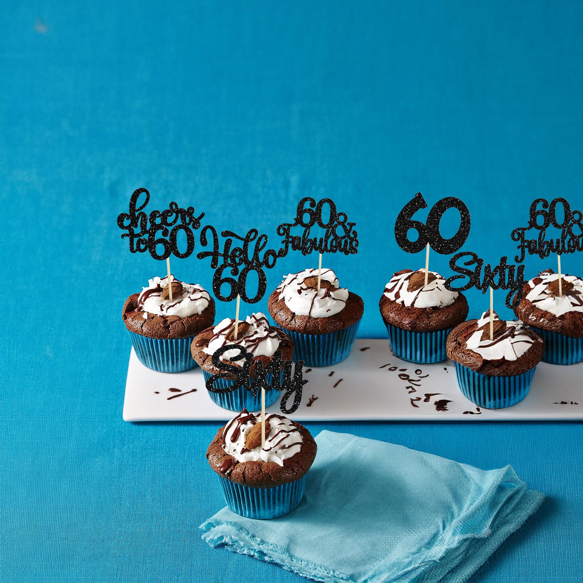 -Package included: 24Pcs Happy 60th Birthday Cupcake Toppers. Comes with assembled, so you can insert into your cake directly, which make your cake more interesting.