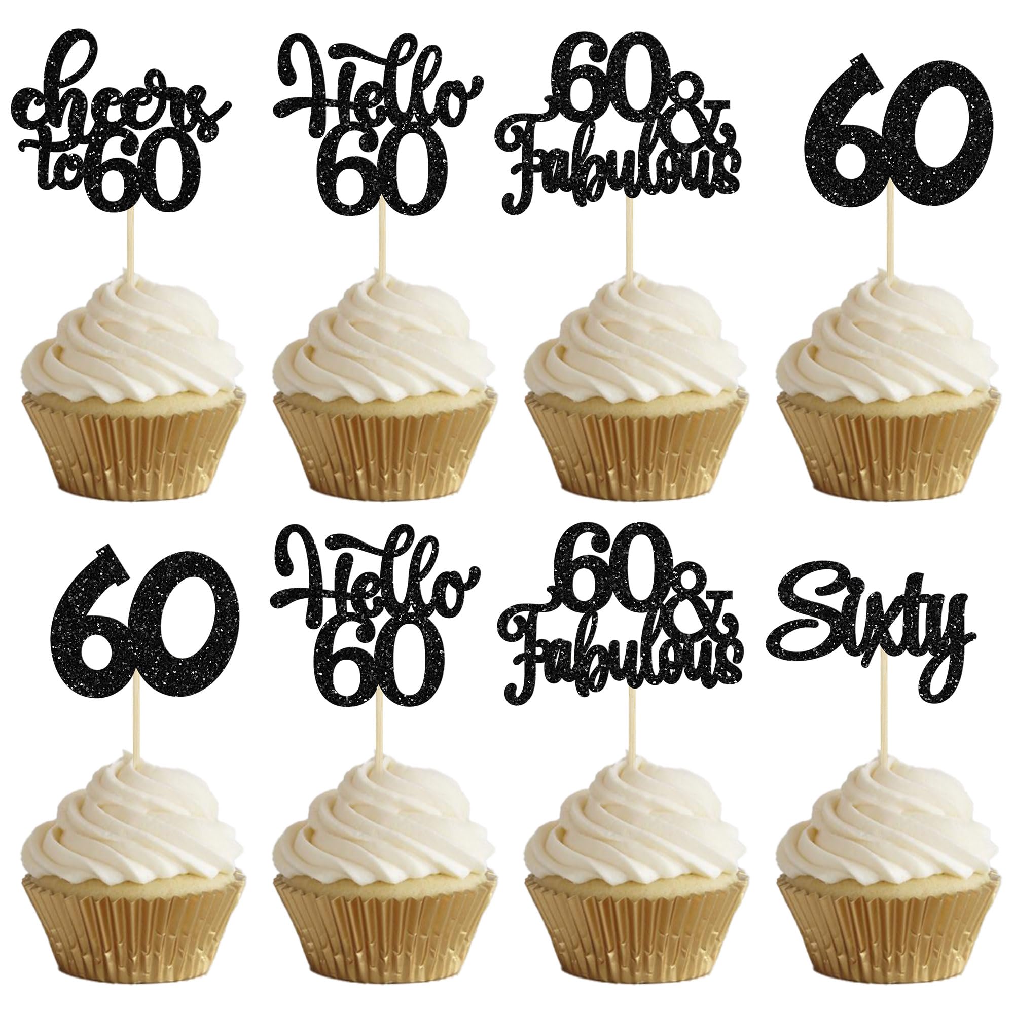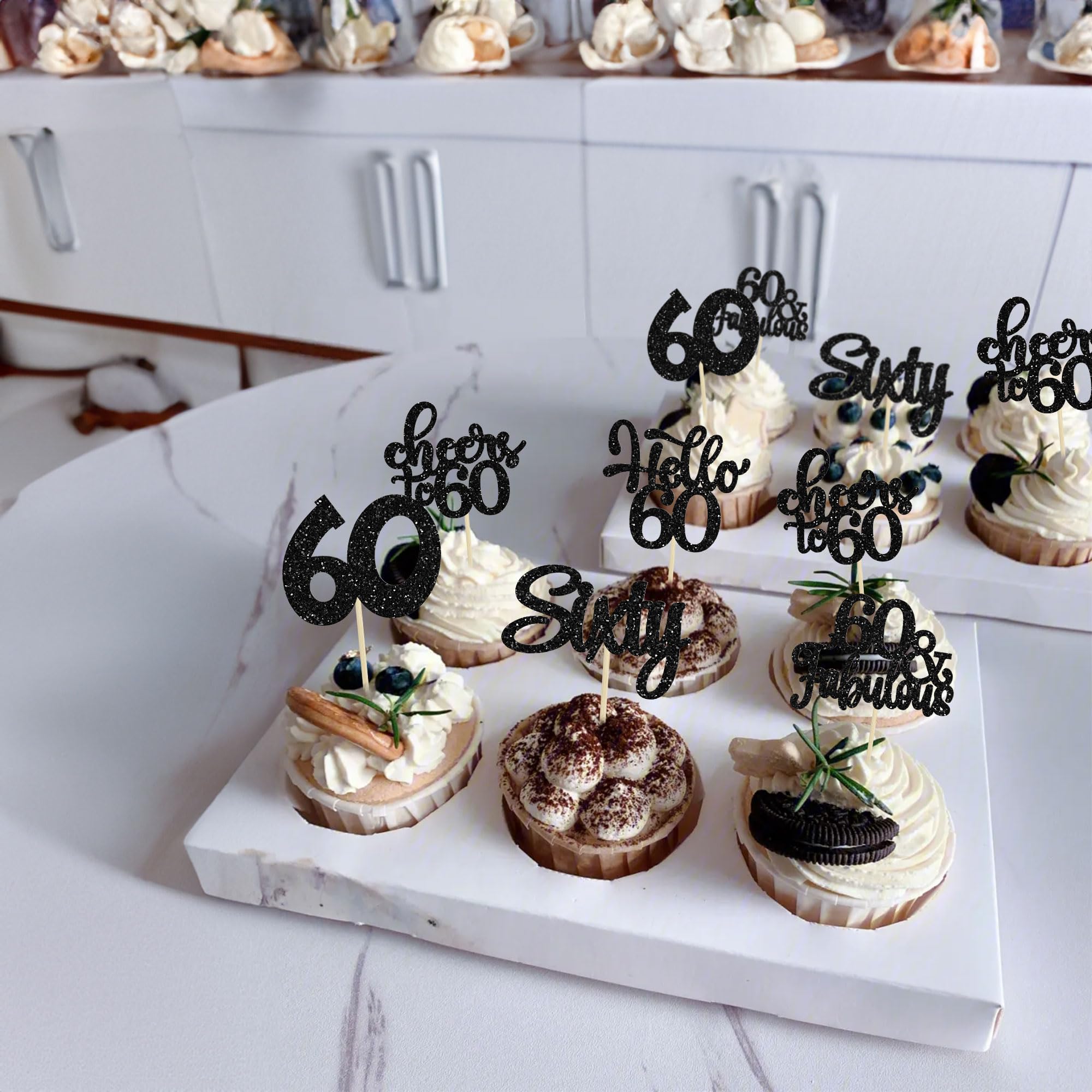 -These Happy 60th Birthday Cupcake Toppers are so cute and good for happy 60th birthday theme party, cheers to 60 years theme party, 60 fabulous theme party, happy 60th birthday anniversary theme party cake decorations. They can make your cupcake more attractive and bring the fun to your party. You can also apply them for ice cream, fruits, cookies and other desserts.