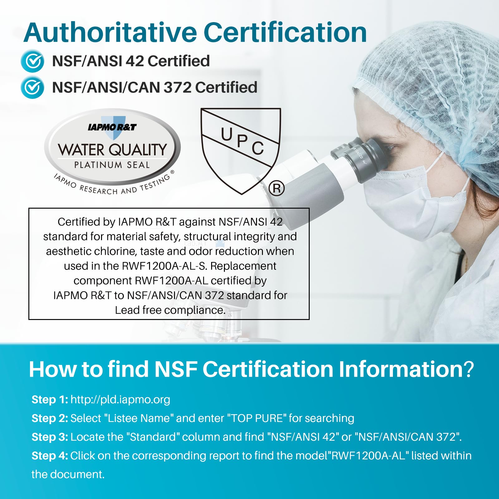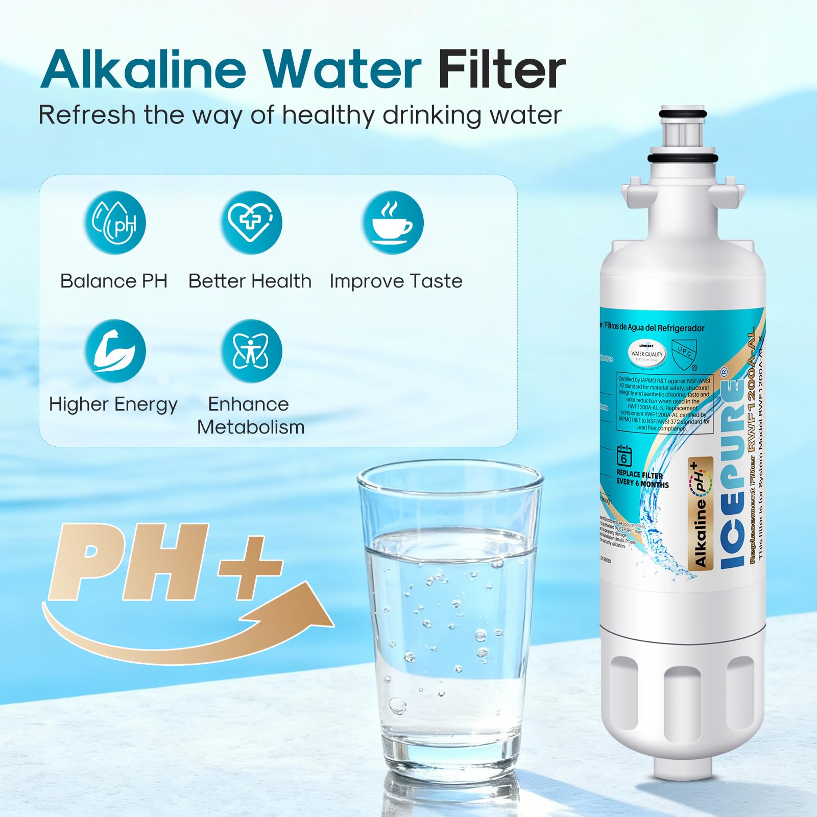 Authoritative Certification - The ICEPURE RWF1200A-AL alkaline water filter strictly adheres to international standards and has been certified by authoritative institutions, including NSF/ANSI 42 and NSF/ANSI/CAN 372 certification, European EC1935/2016, ROHS, REACH, BPA-Free, TUV, and Australian Water Mark. Each filtration performance has been professionally tested and verified to ensure the safety and reliability of the water output, providing high-quality drinking water for your family.