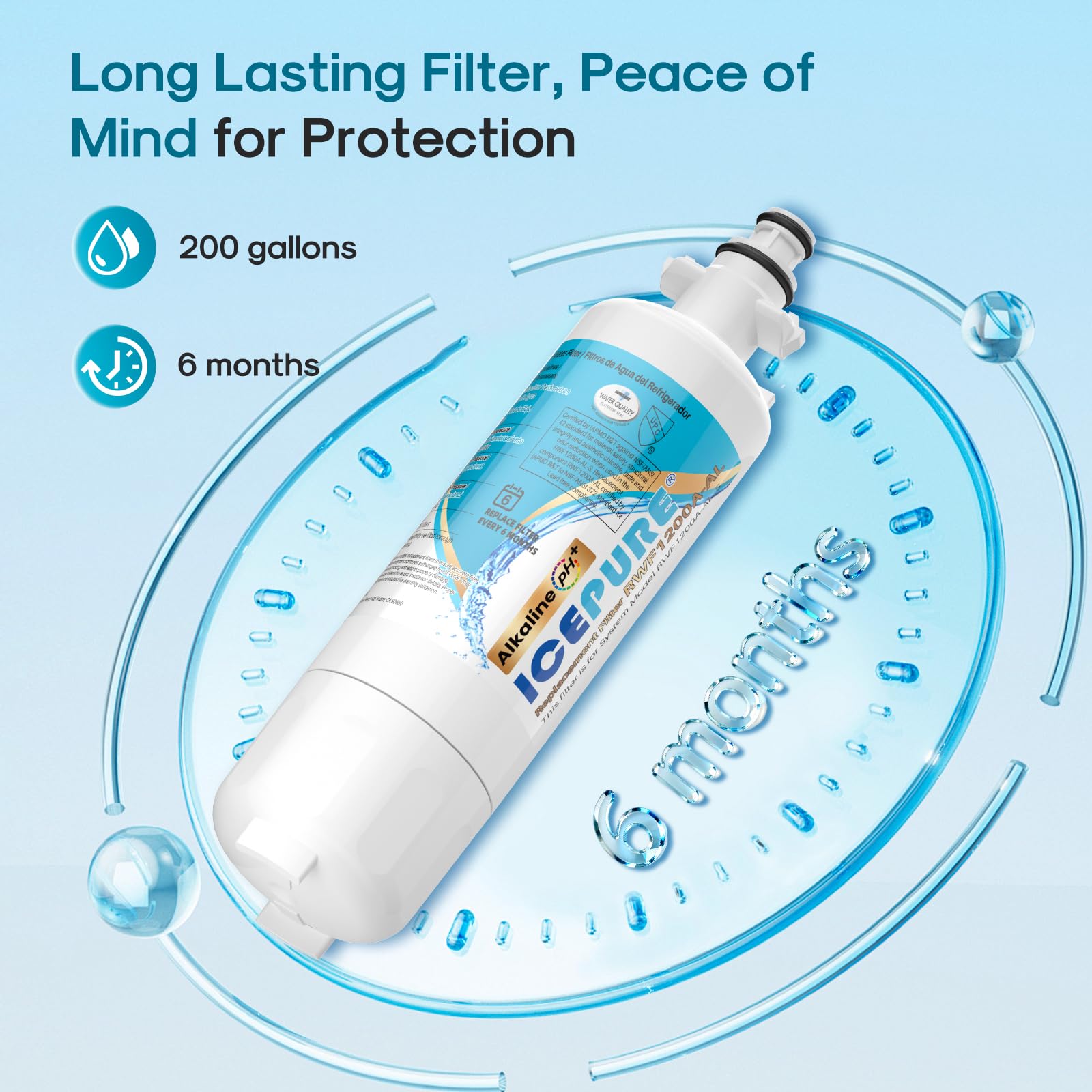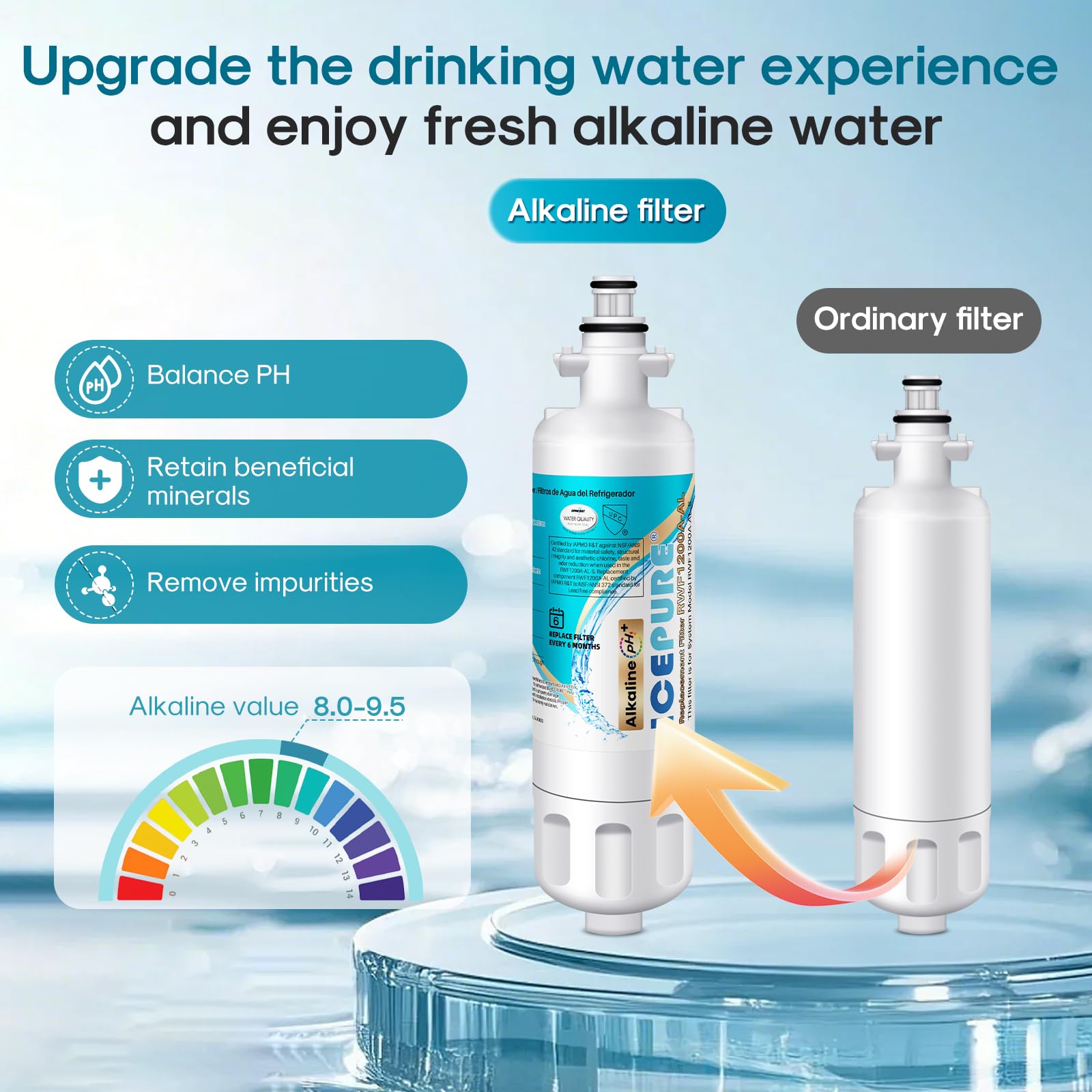 Economic and Environmental Protection - The alkaline water filter fit for LG LT700P has a long service life and can filter about 200 gallons of water, which can meet the drinking water needs of an ordinary family for 6 months (based on normal household water consumption). Save you the frequent replacement costs. This is not only an extremely cost-effective choice, but also contributes to the environmental protection of the Earth.