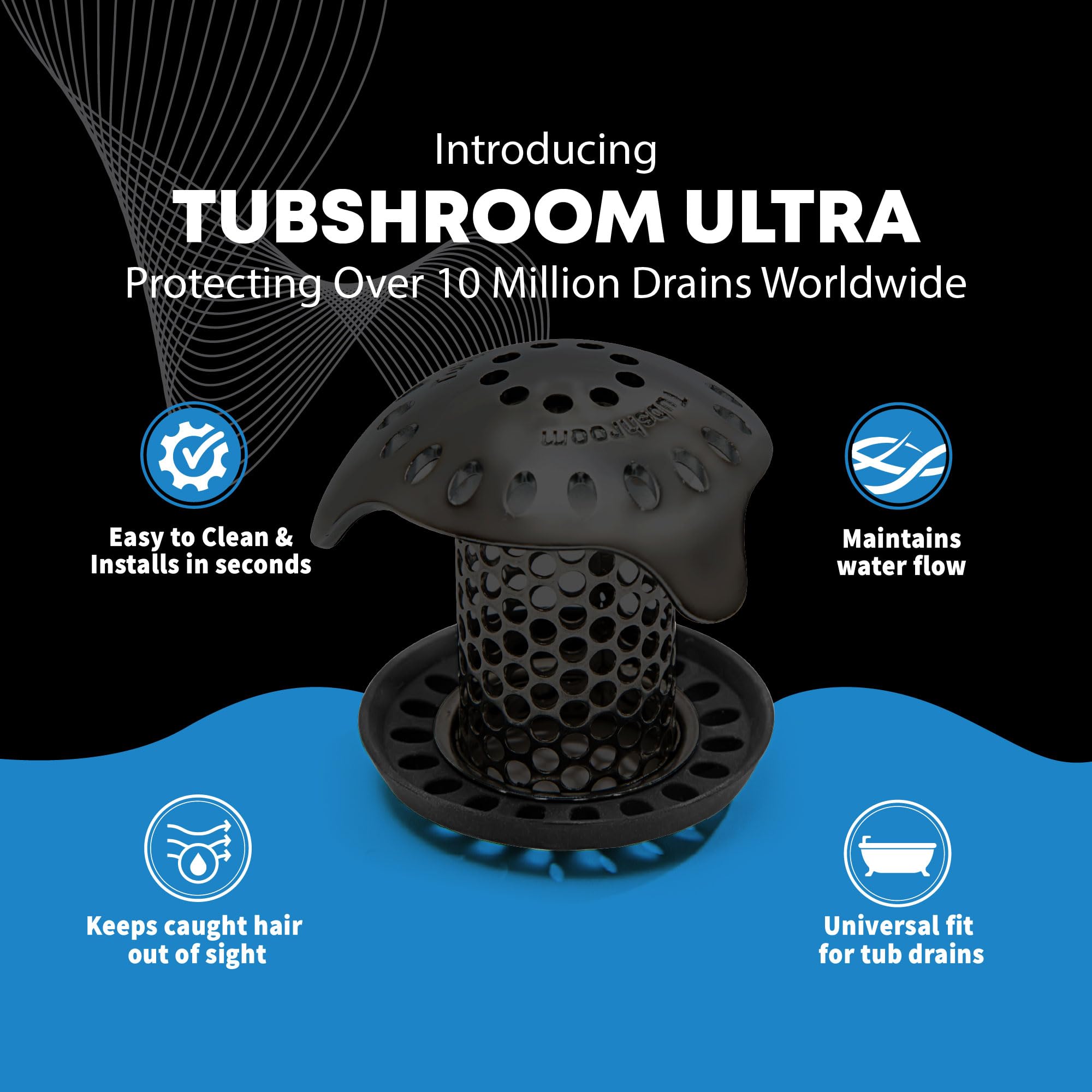 Transform your drain maintenance with the TubShroom Ultra, an innovative stainless steel drain protector that catches hair before it can clog your pipes. Unlike traditional drain covers that sit on top, this revolutionary design fits inside standard tub drains, efficiently collecting hair around its base while maintaining smooth water flow. The matte black finish adds a modern touch to your bathroom. Made from durable stainless steel, this superior strainer features an award-winning design that's been tested in over 9 million drains. Installation is effortless - simply insert it into your drain using one of the included adapters (fits 1.25", 1.5", 1.75", and 2" drains). When it's time to clean, just lift it out and wipe away the collected hair - no harsh chemicals or expensive plumber visits needed. The TubShroom Ultra effectively catches human and pet hair while remaining virtually hidden from sight, making it both functional and aesthetically pleasing. Each package includes one TubShroom Ultra drain protector and a complete set of drain adapters for universal compatibility.