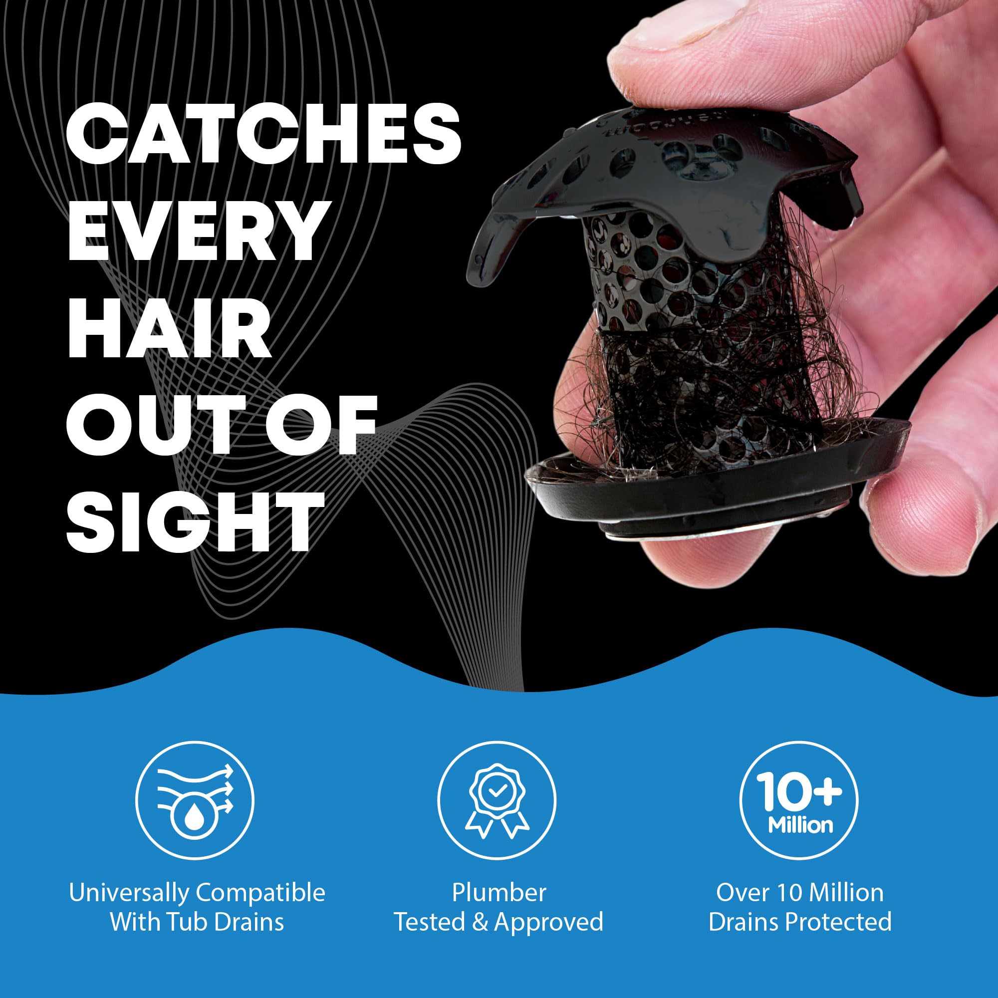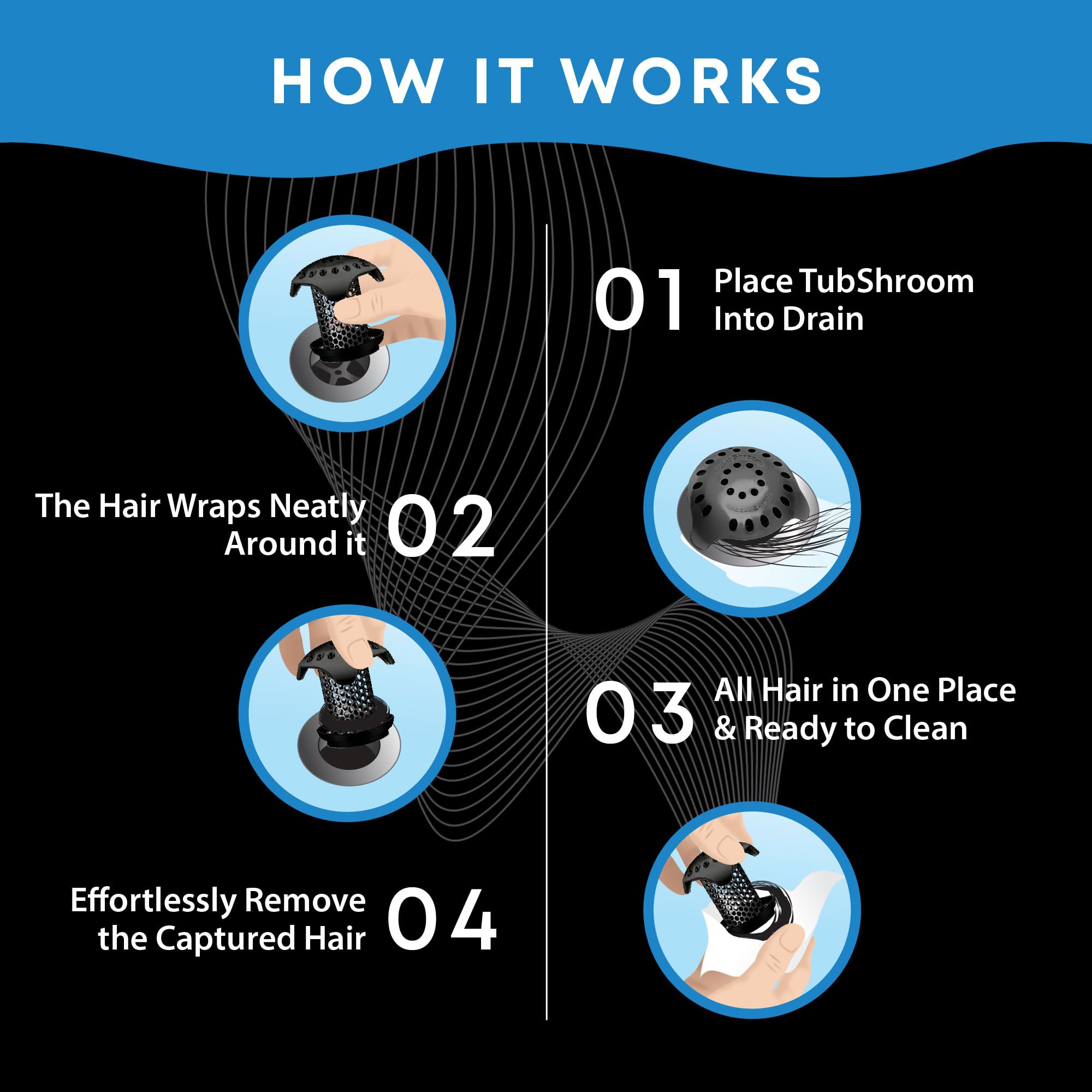 EFFECTIVE HAIR CATCHING: Unique mushroom-shaped design captures all types of hair without disrupting water flow, keeping it neatly wrapped and out of sight