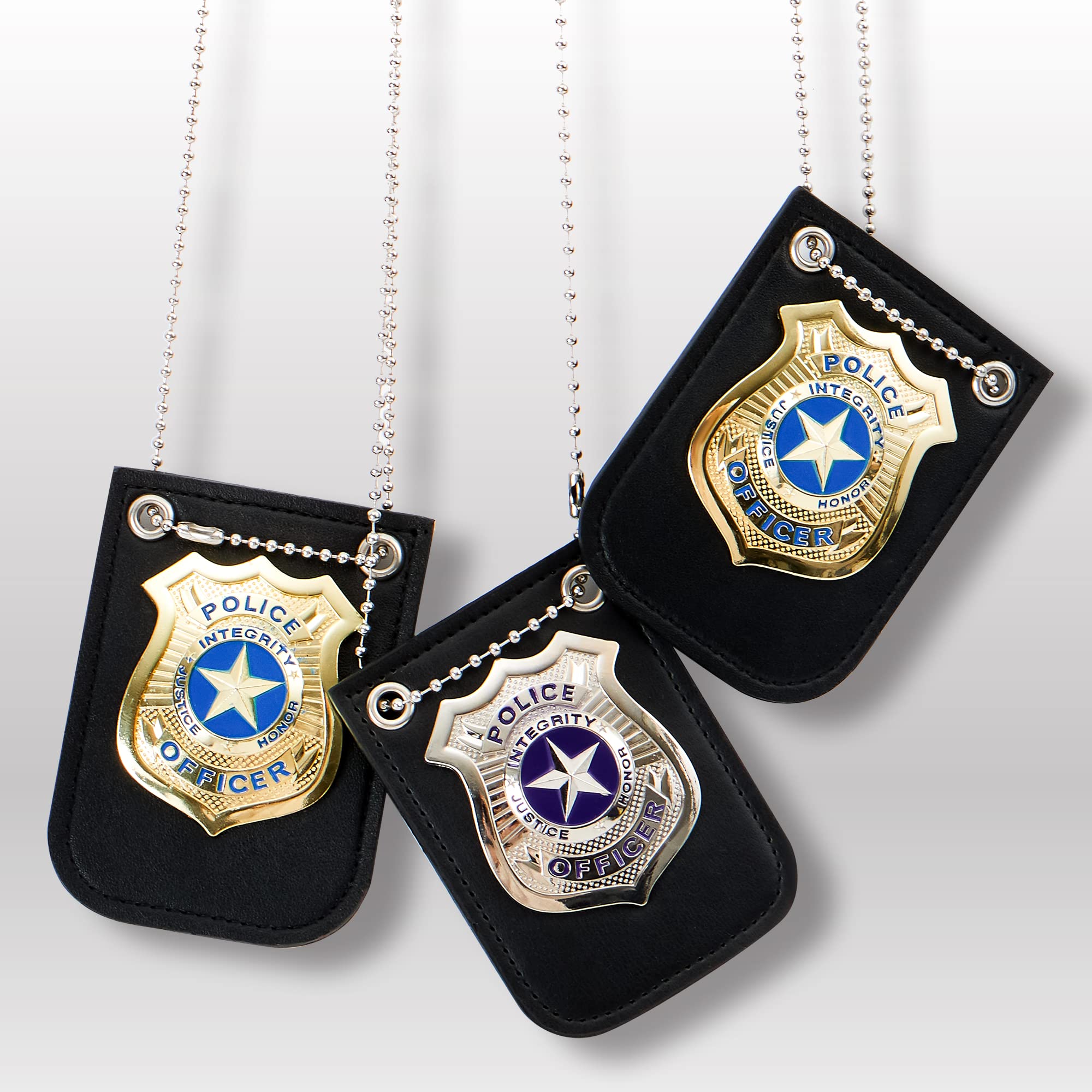 SUPER VALUE PACK. Our Police Pretend 2 Gold and 1 Silver toy Police Badge. This Police Pretend is a high-grade toy made of high quality material with well polished, no rough edges, and hefty and sturdy.
