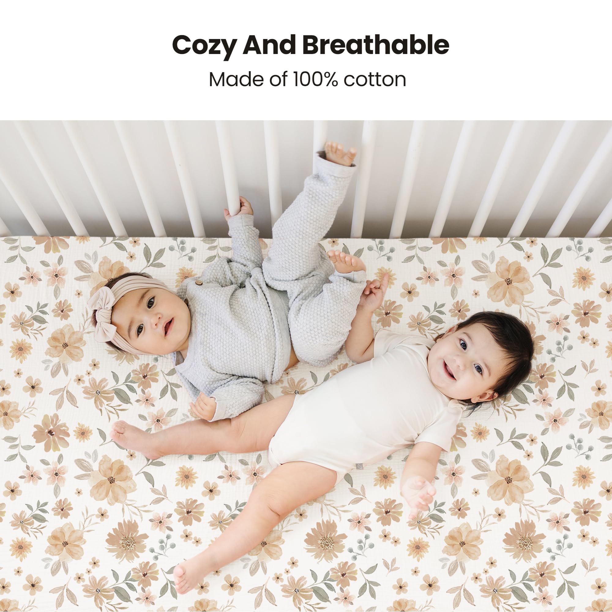 Cute Design: Our muslin crib sheet adorned have 2 PCS different color prints will make your baby look more adorable, suitable for both boys and girls! Lay your baby down to sleep in a soft and breathable crib sheet