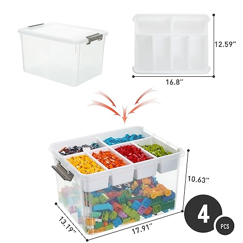 【32-Quart Capacity】: Package includes 4 containers for organizing, Dimensions: 17.91" L * 13.19" W * 10.63" H. Perfect for bathroom, kitchen, closet, pet, office, garage, bedroom, basement, camping, and other large storage needs;