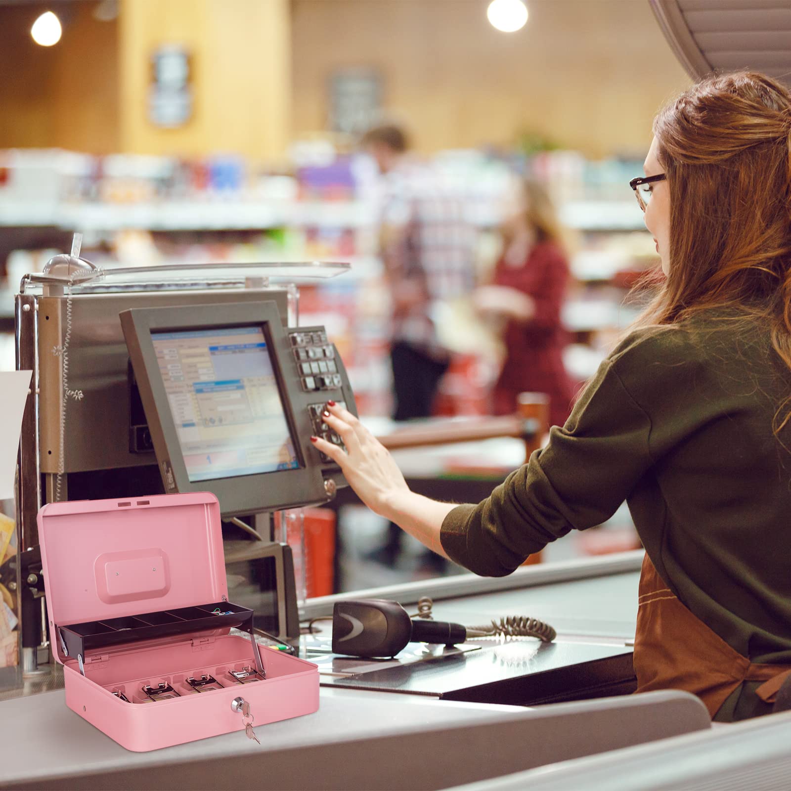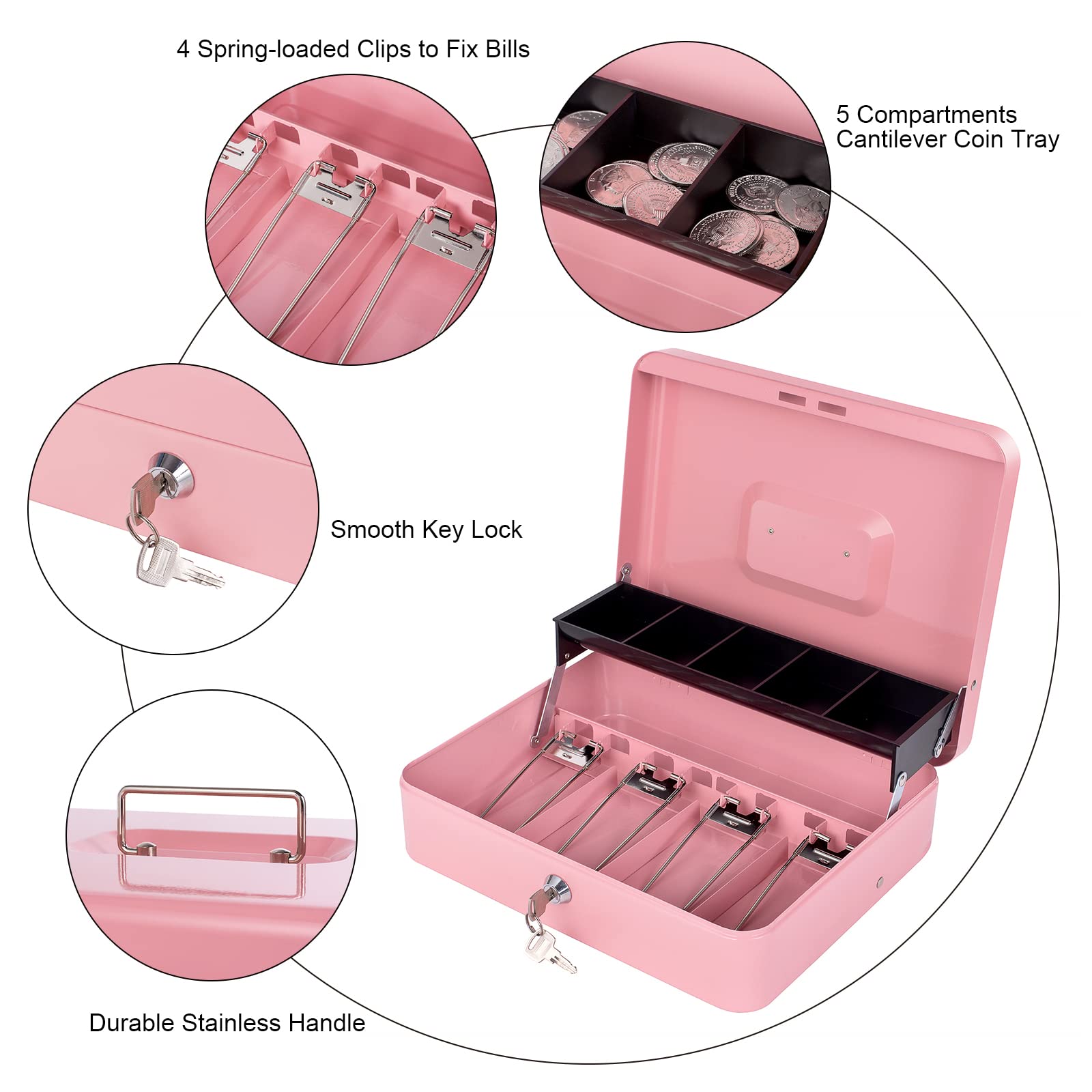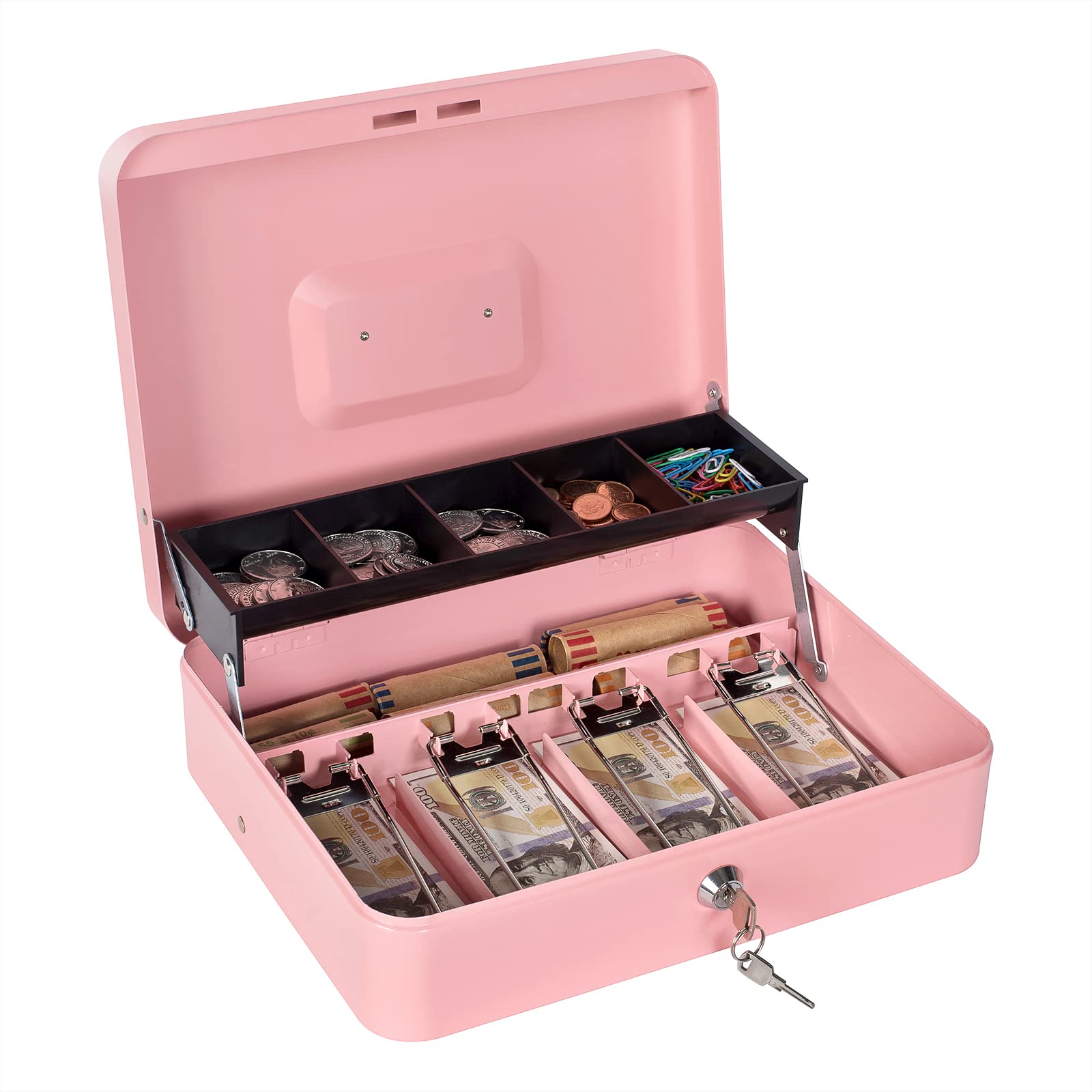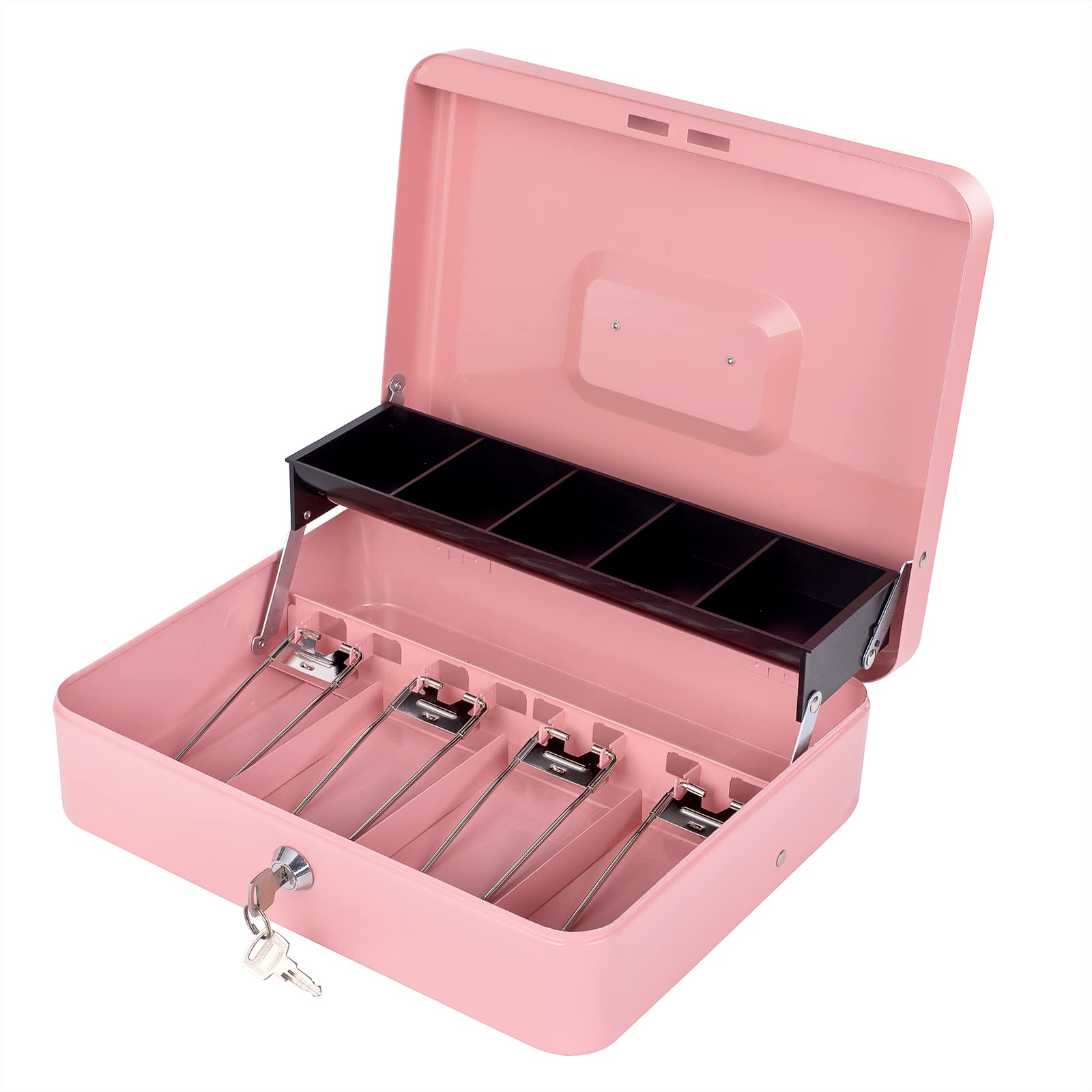 WELL DESIGNED: our pink cash box is designed with three parts: coin storage area, bill storage area, notes and receipts storage area, providing ample space for all your cash, coin and valuables, and keep them well organized in one money box