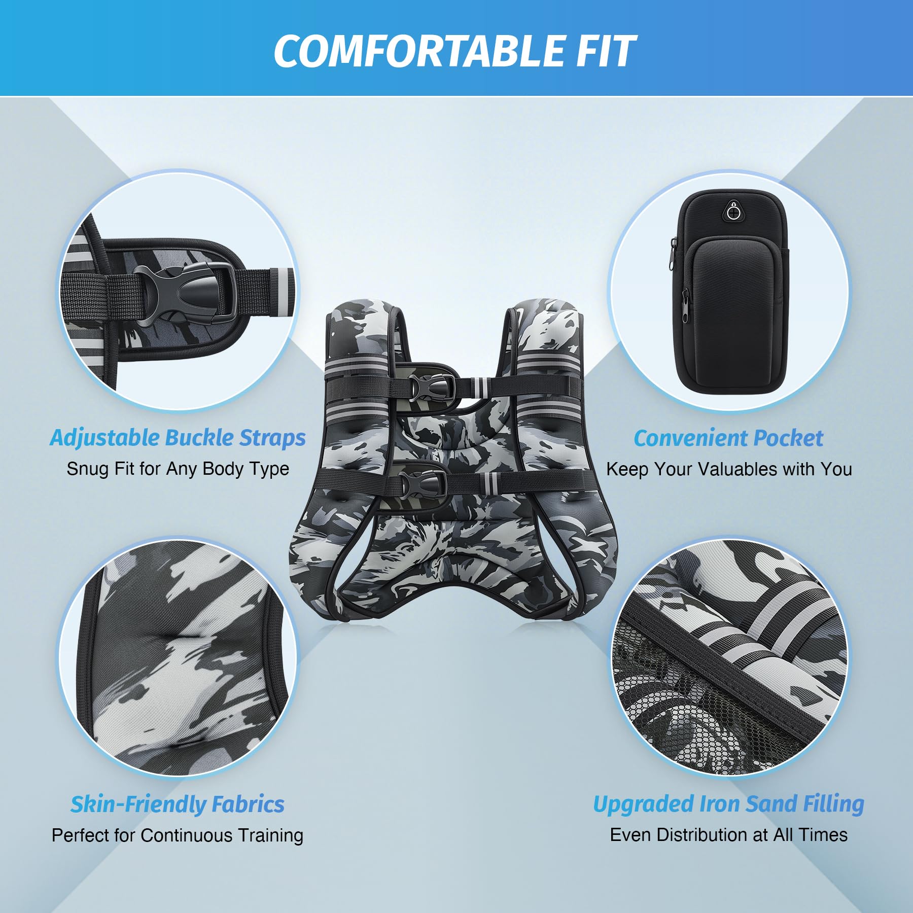 EVEN WEIGHT DISTRIBUTION: Evenly filled with iron sand, this well-balanced vest decreases injury risk while working out