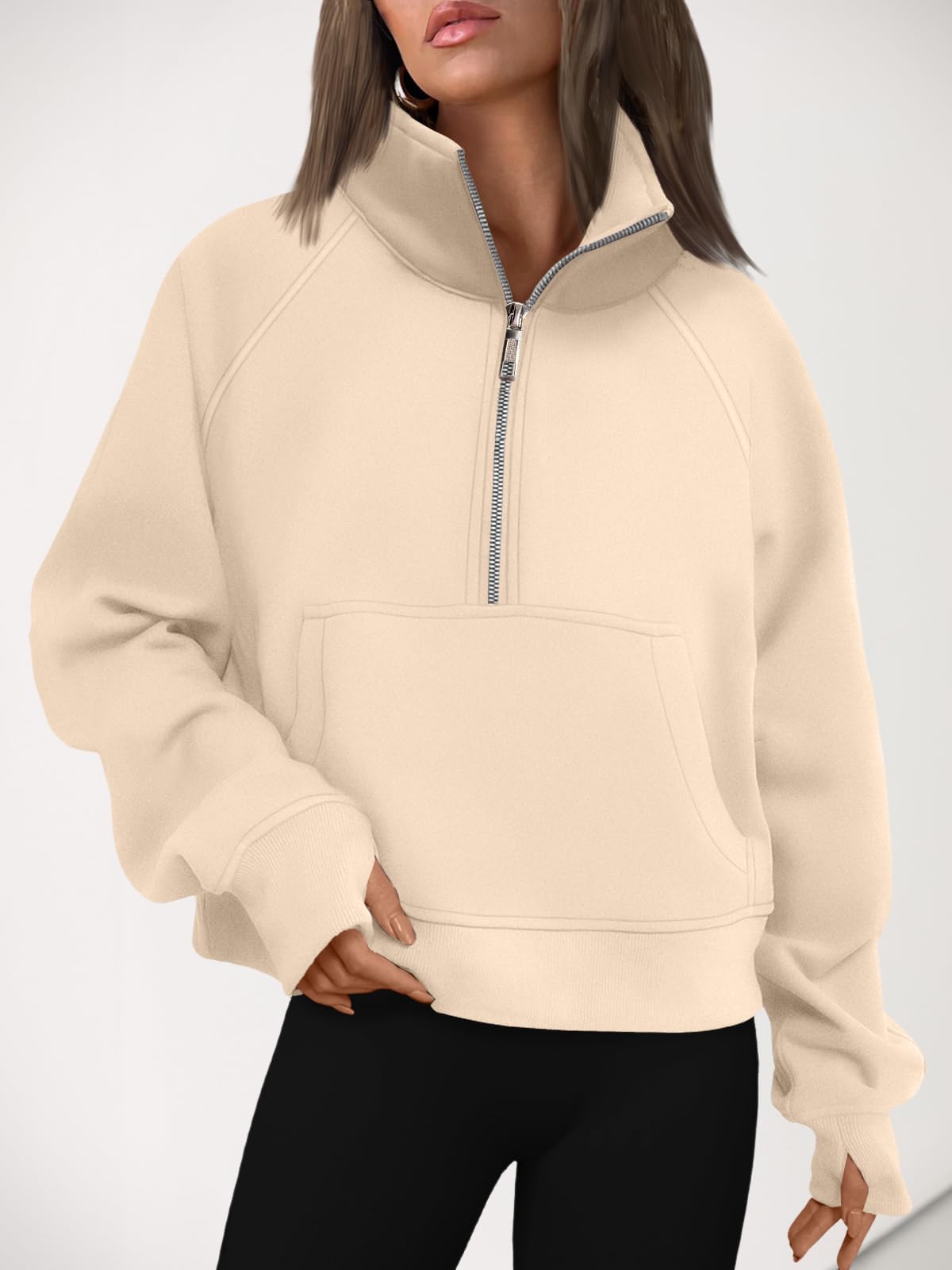 ★Fashion: 1/2 zip up collar sweatshirt, the zipper works smoothly, solid color, stand collar, y2k clothing, fleece lined, soft inside, relaxed fit, crop top