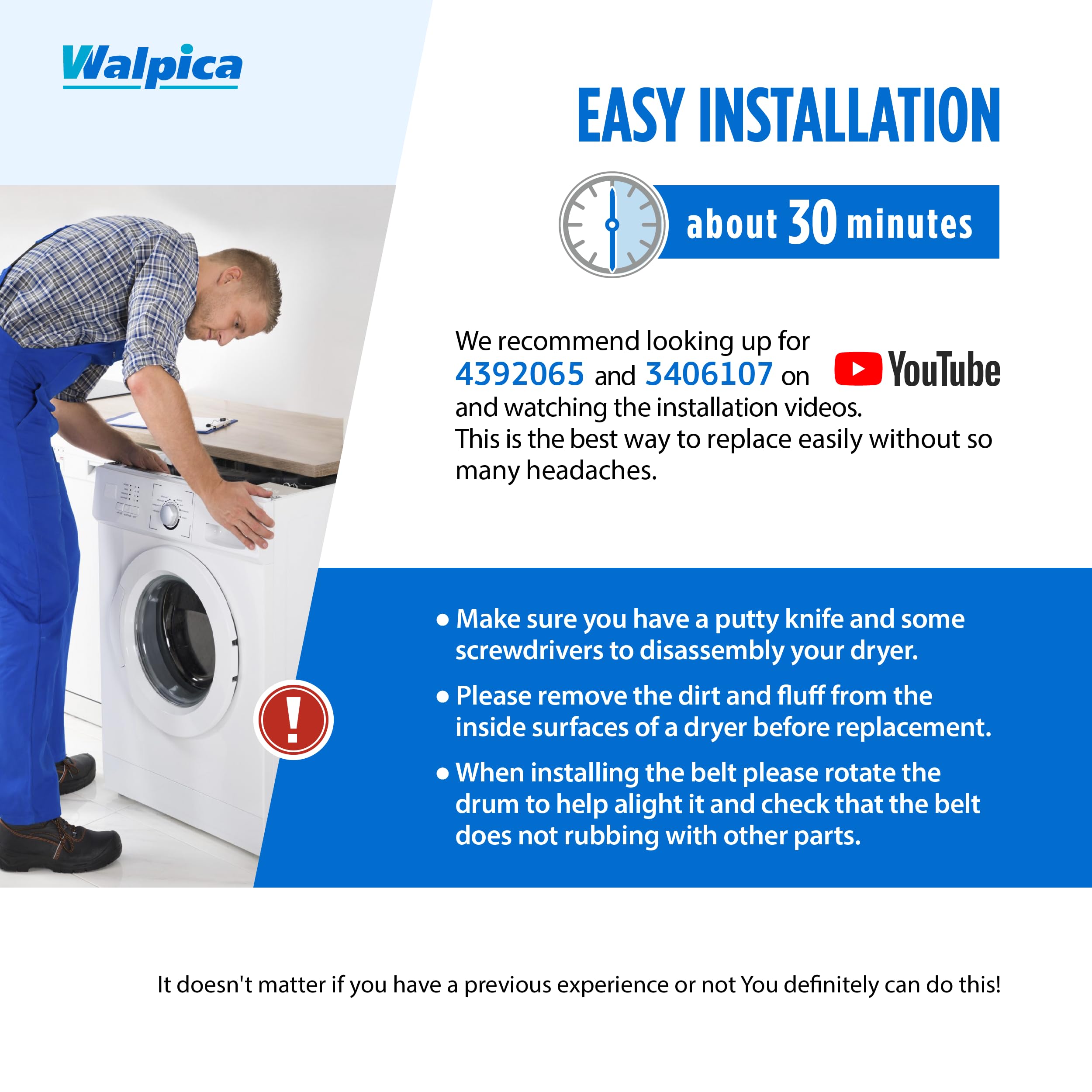Cross Reference: -- Dryer Repair Kit Belt Drum Roller Door Switch Idler Pulley Replacement Parts replaces parts numbers 4392065 341241 3406107 349241T WP691366 279948 8066065 80046 2014 26000279435 26000279436 279435 279436 279708 279708MS 279709 279709MS 279860 4392065VP 587636 8106 8237 8238 AH373087 EA373087 PS373087 AP3131942 PD00002464 EAP373087...