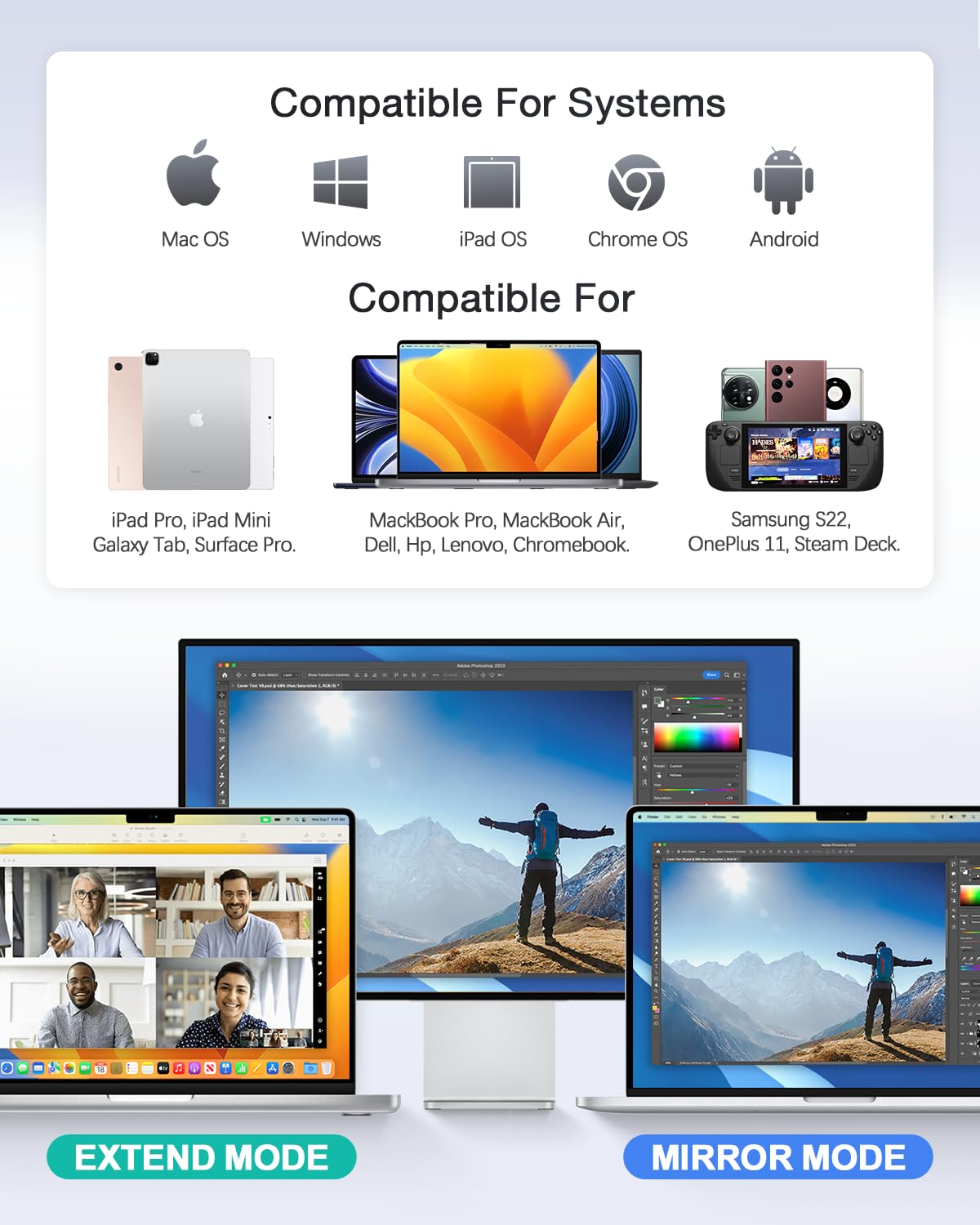 Travel-Ready & Broad Compatibility – Slim aluminum shell (~2.4oz) fits your bag. Works with MacBook Pro/Air, Dell, HP, Lenovo, Surface, iPad Pro and other USB-C laptops/tablets/phones that support DP Alt Mode
