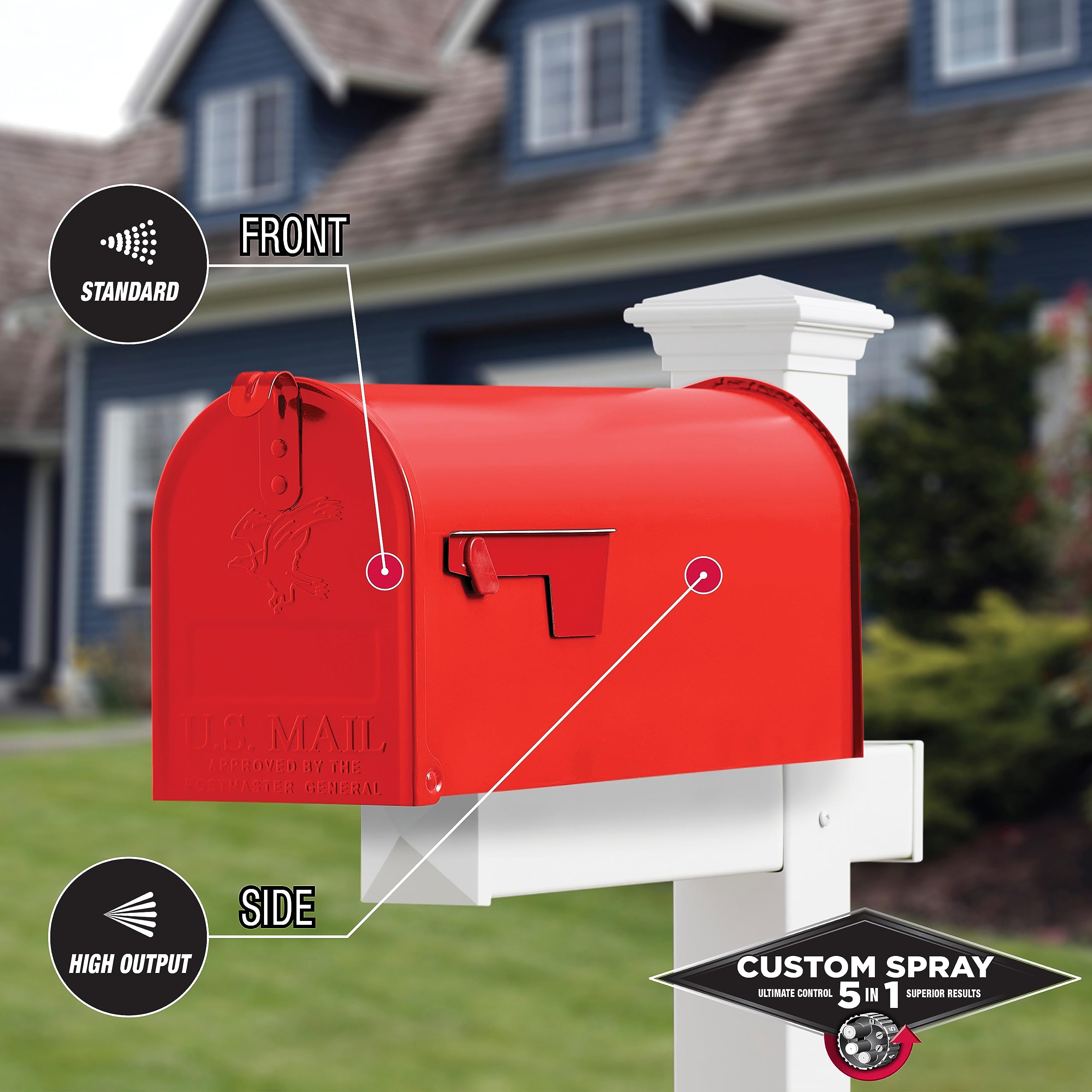 Custom Spray 5-in-1 dial offers five spray paint patterns for ultimate control and superior results