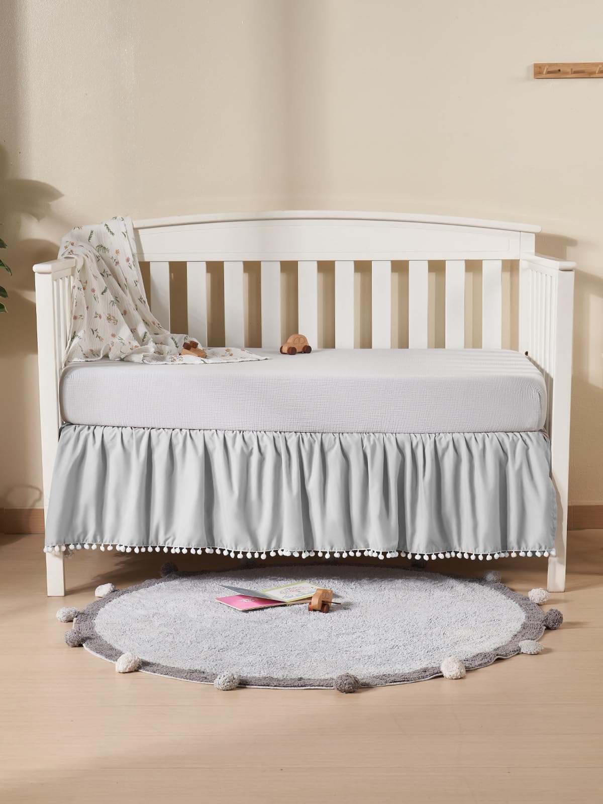 Cute Design: Featuring elegant ruffles with small pompom design, it makes the crib look more cute and charming.