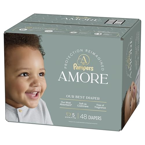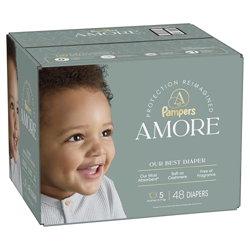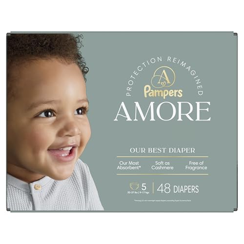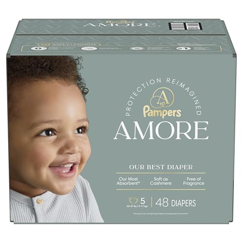 Introducing Pampers Amore—our best diaper. Thoughtfully crafted with 60+ years of Pampers quality and expertise, reimagined for today. Built with 5 layers of protection, it is our most absorbent diaper*. Pampers Amore diapers feature an all-around blowout and leak-guard barrier to help prevent up to 100% of leaks. Plus, they are built with our KeepDry liner for unbeatable dryness and comfort**. These diapers provide premium performance without compromise. They are Dermatologically accredited by the Skin Health Alliance and tested for 1000+ Harmful Chemicals. They are hypoallergenic and free of fragrance, parabens, elemental chlorine and latex (no natural rubber). Because real luxury means peace of mind. Pampers Amore diapers are designed with the finest materials. They are soft as cashmere, making them extra gentle on your baby’s delicate skin. Each diaper features delicate patterns as cute as your little one with a wide wetness indicator that lets you know when they go. Because when it comes to love, there's no such thing as good enough. Give them the best. Pampers Amore—made with love in every detail.among U.S. non-overnight taped diapers; excluding Super Economy Pack **Based on size 4 Pampers Amore. 3 typical wettings of 75ml under 0.5psi pressure. Among day-and-night taped diapers