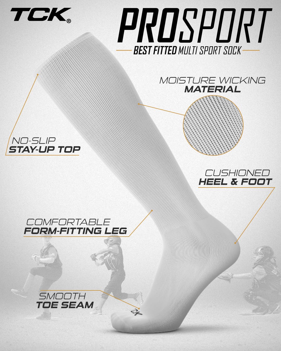 CLASSIC MULTISPORT ATHLETIC SOCKS: The Prosport is the gold standard for the classic athletic tube sock. This iconic sock has been produced for over a decade and has graced the feet of many top athletes. Hitting just below the knee, this sock is ideal for baseball, softball, football, field hockey and more! Available in over 20 team colors and 5 precise sizes, the Prosport is the sock to elevate your game to the next level.
