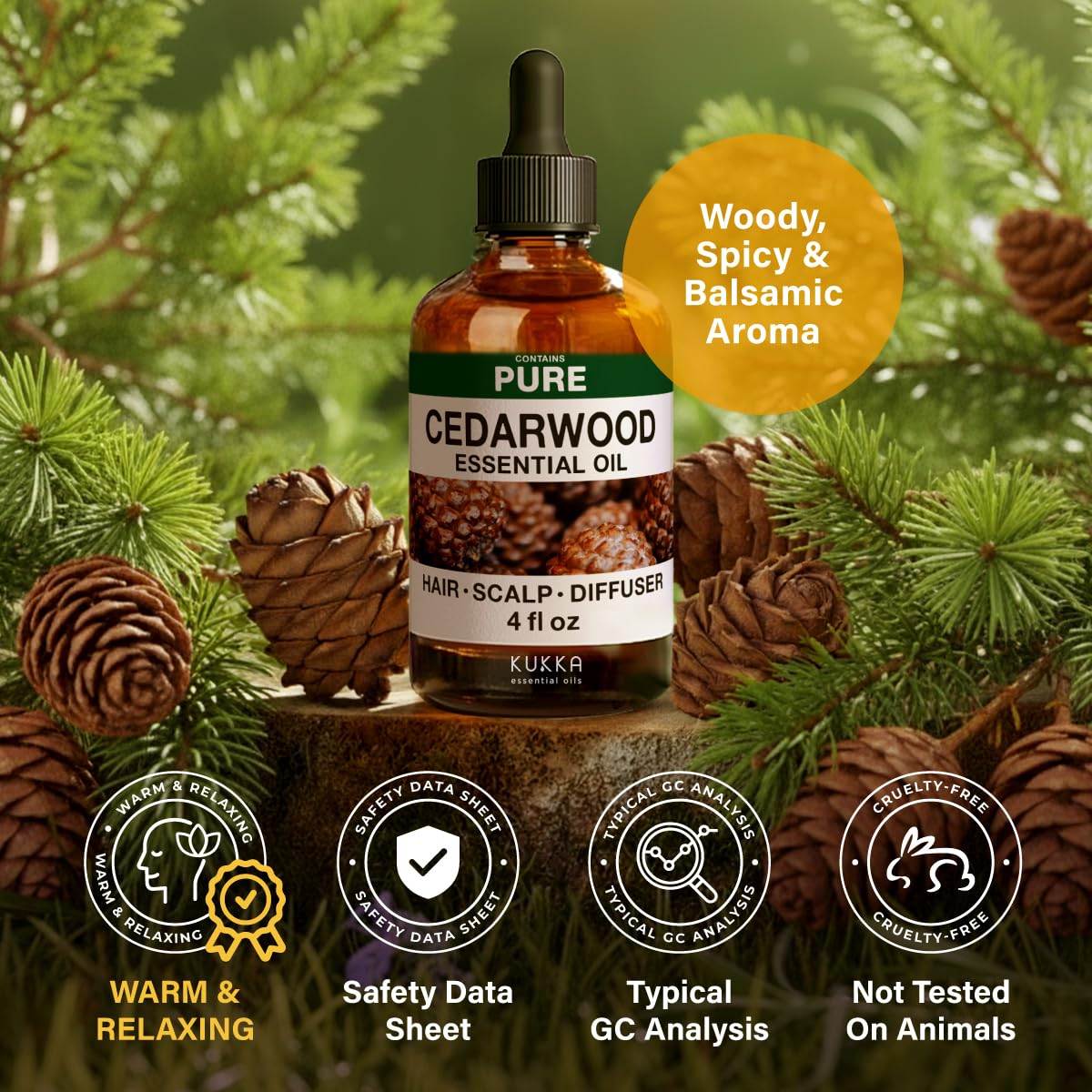 Cedarwood essential oil for hair and skin. Our cedarwood oil for hair is a nourishing addition that may enhance hair appearance. It's also soothing on skin, potentially promoting the appearance of smoother-looking skin over time.