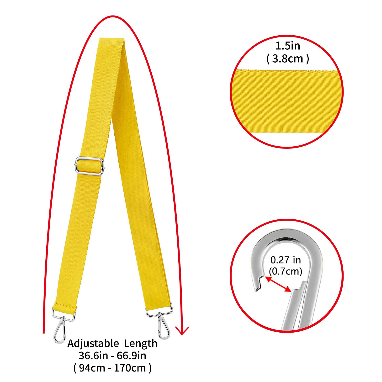 ★Adjustable - Adjustable length(including snap hooks): 36.6"~66.9"(94cm-170cm), it is long enough to wear on the shoulder or cross body, use it as a decorative accessories for your bag also a good choice.