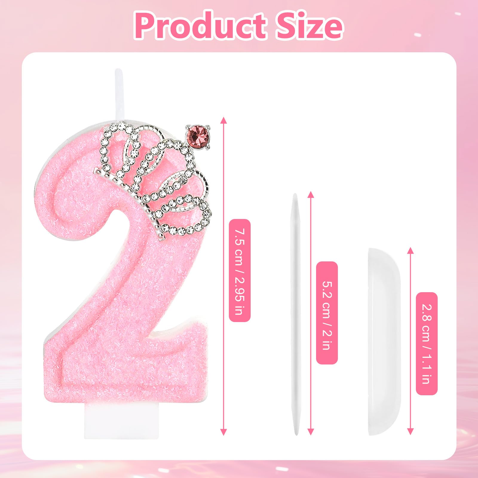 Beautiful: This pink birthday candle has a beautiful crown inlaid on the surface and is beautifully designed to add a bright splash of color to your cake!