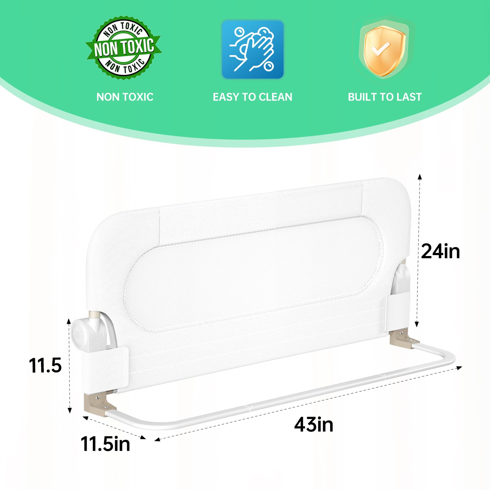 Collision Protection:we have made built-in sponges wherever the guard rail can touch to prevent your child from getting hurt by collision