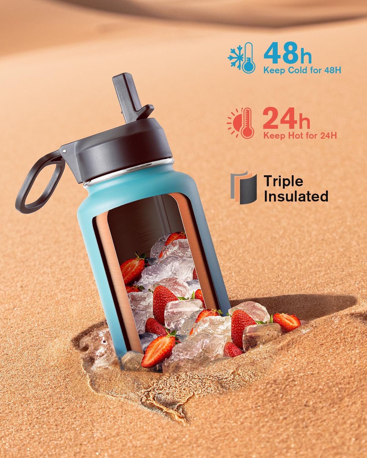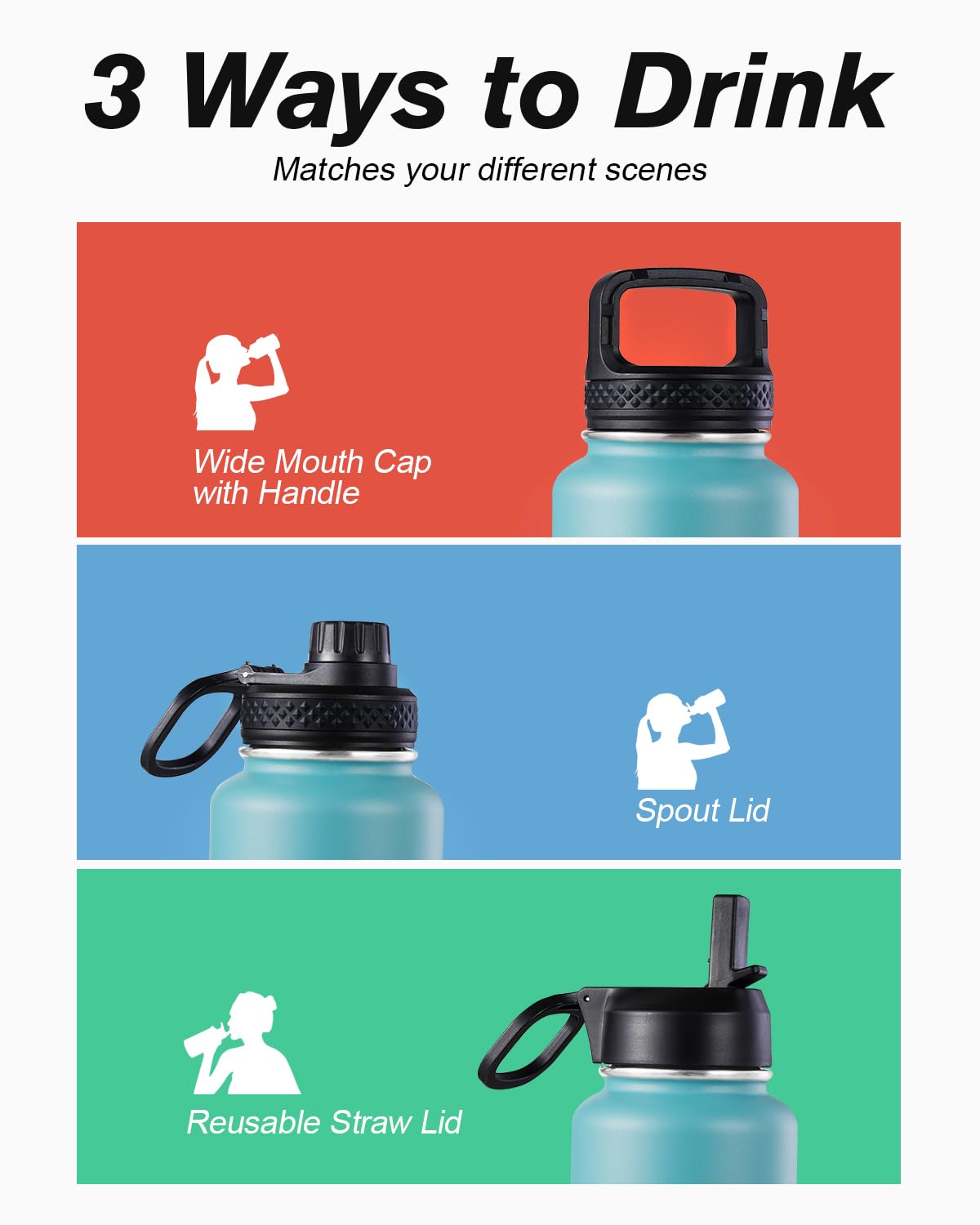 Travel Longer: With 40 oz capacity, the metal water bottle allows you to enjoy your trip easier with fewer refills, perfect for hiking, camping and sport events. It's easy to stay hydrated and refreshed on exciting adventures with such a versatile bottle