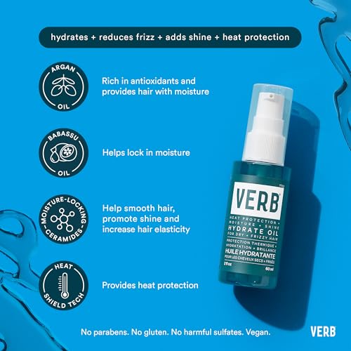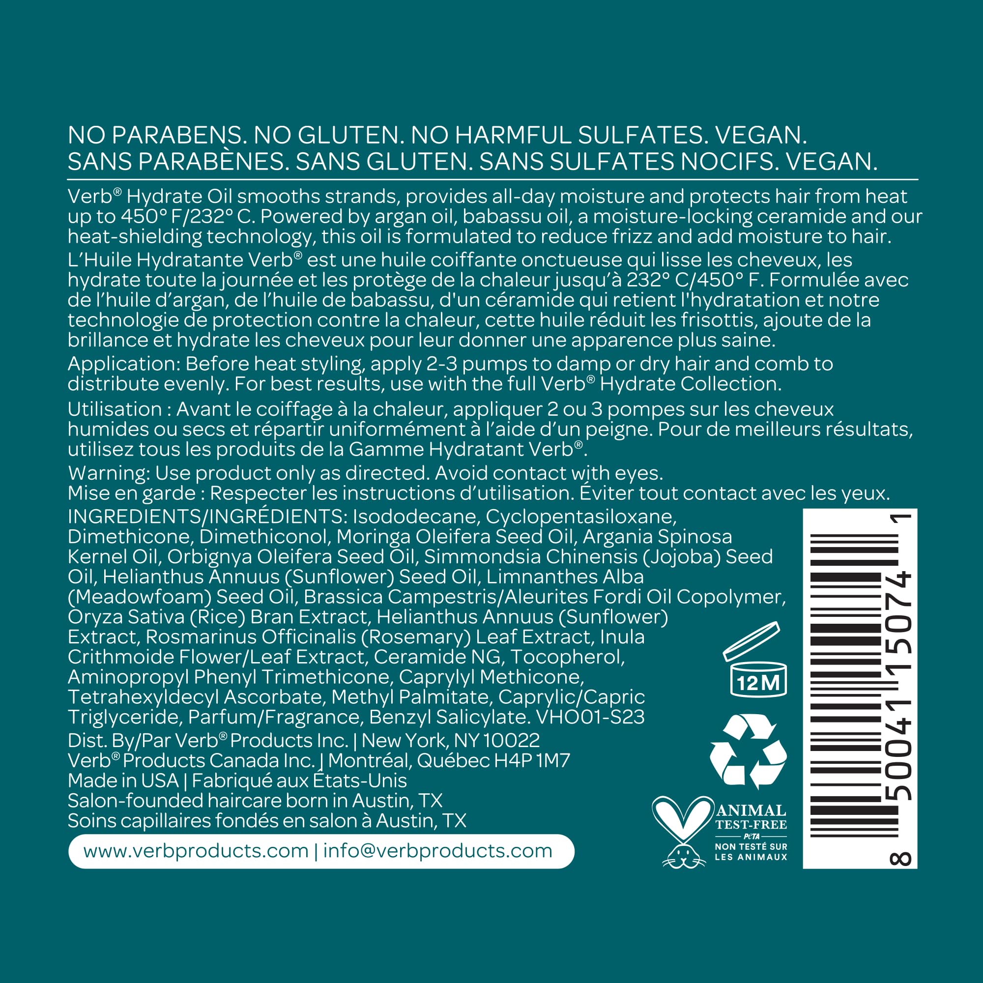 HYDRATING HEAT PROTECTION: Verb️ Hydrate Oil is a rich styling oil that smooths strands, provides all-day moisture and protects hair from heat up to 450 °F/232 °C