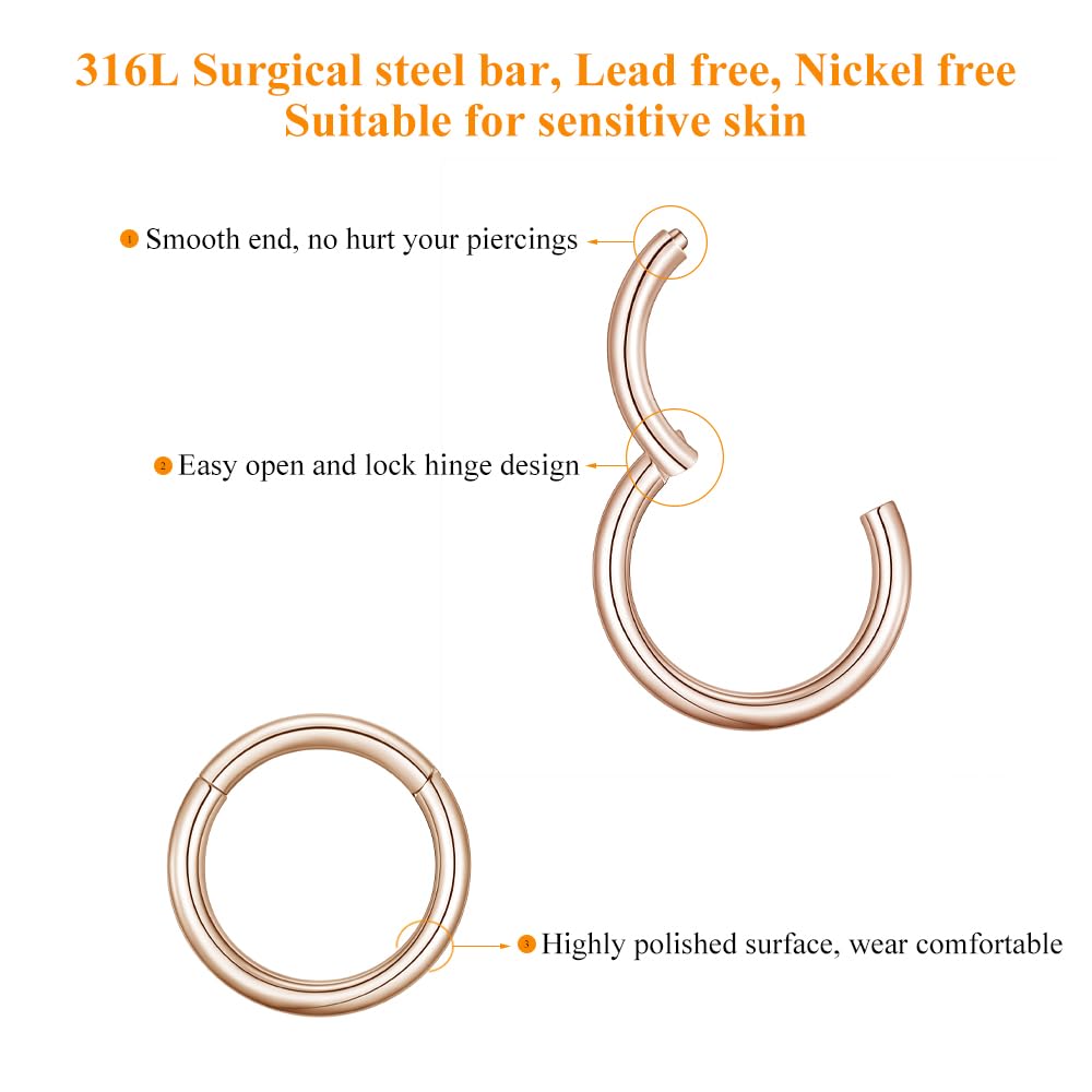 Hypoallergenic Material - Made of 316L surgical steel, and high polished smooth surface, comfortable to wear, high resistance to rust and corrosion, more importantly, it is Hypoallergenic.