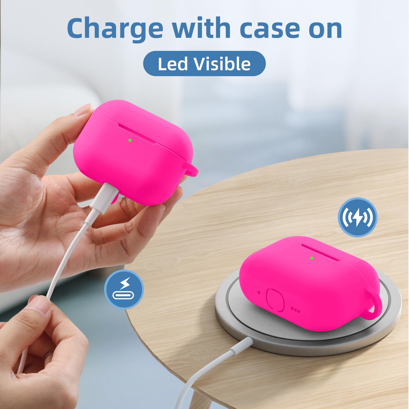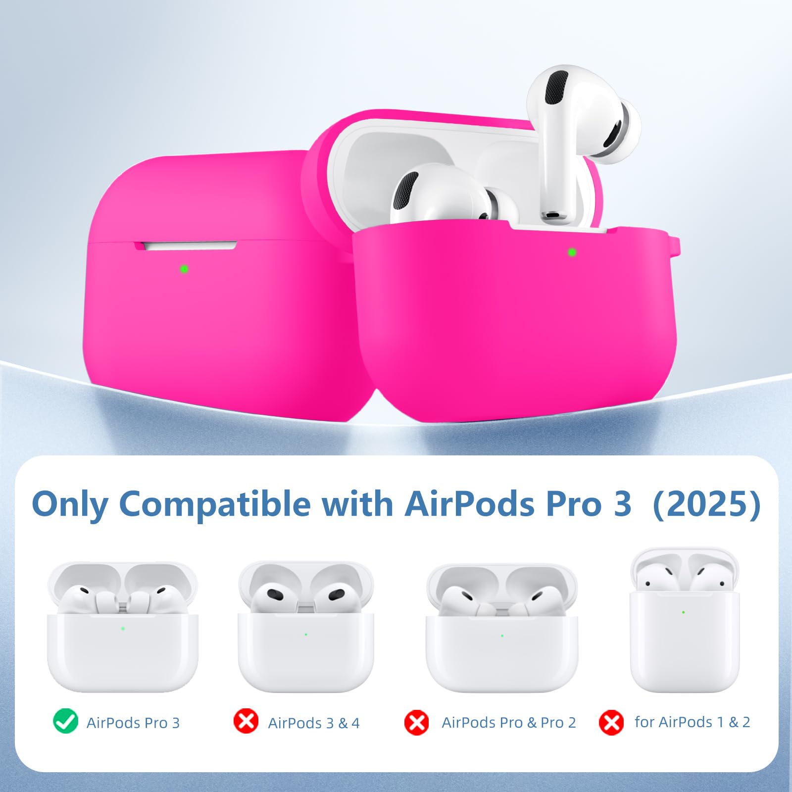 【 Snug Fit for AirPods Pro 3rd Gen】Designed exclusively for AirPods Pro 3 (2025), this sleek silicone case offers a snug, secure fit while providing full access to all ports, buttons, and functions. The front LED charging indicator remains clearly visible, so you can monitor battery status at a glance.