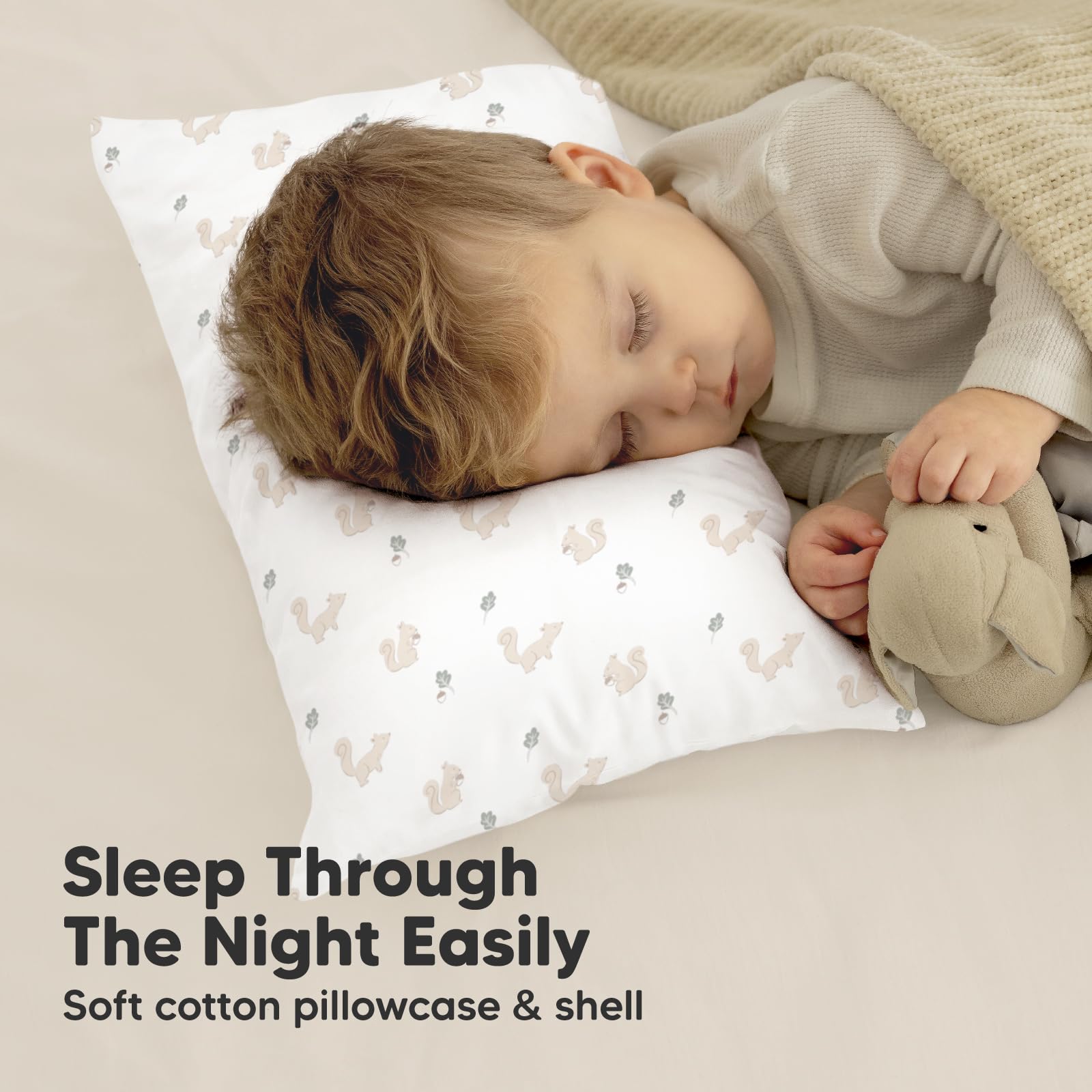 Safe and Natural – We used OEKO-TEX 100 Standard Certified Cotton, and GOTS Certified CU 1042833, for our Buddy Toddler Pillows and Pillowcases. Gentle, breathable, natural – The perfect kids pillow for toddler age 2 to 5.