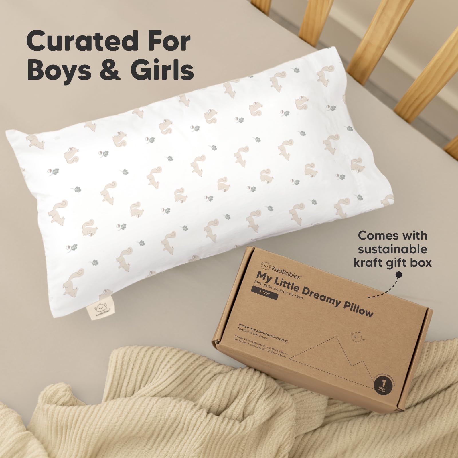 Introducing the Buddy Toddler Pillow - A spin-off from the wildly popular KeaBabies My Little Dreamy Toddler Pillow. This 10”x18" small pillow is ergonomically crafted for sleep, play, and travel, and is sure to become your child's new favorite pillow.