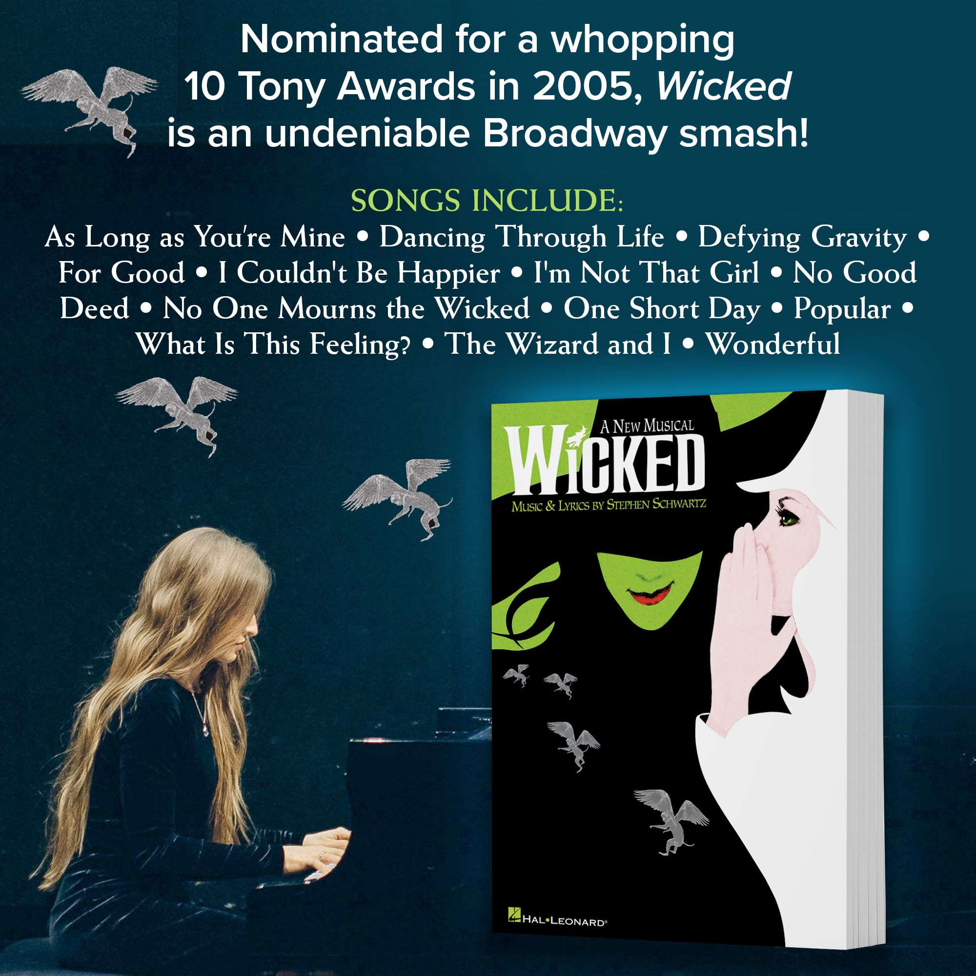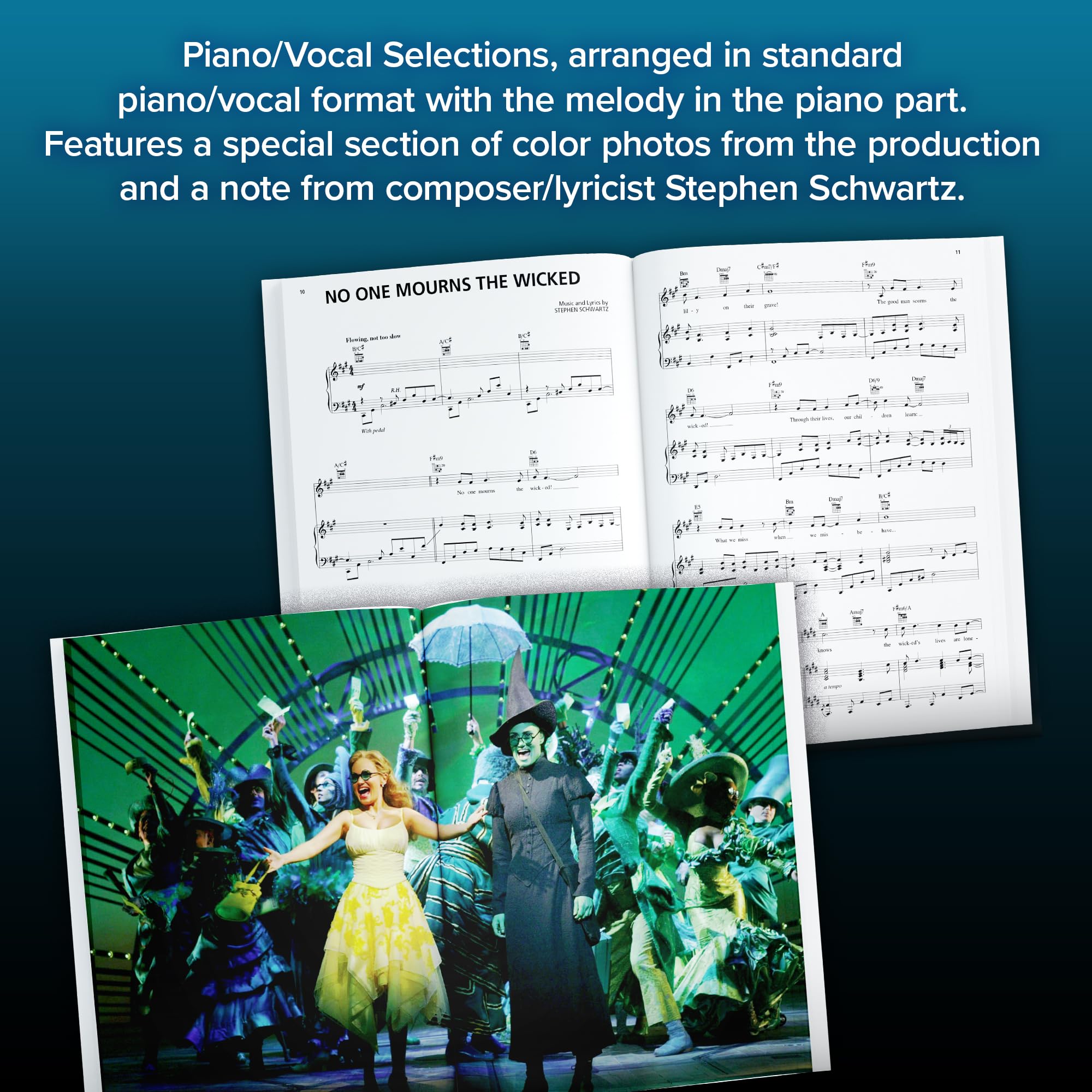 Bring Broadway magic to your piano with Wicked – A New Musical. This official piano/vocal songbook by award-winning composer Stephen Schwartz is perfect for pianists, singers, and musical theater enthusiasts. Designed for intermediate players, students, and teachers, it offers the authentic arrangements used in the show, making it ideal for practice, auditions, and performances. Each piece captures the powerful emotion and storytelling that made Wicked one of Broadway’s most beloved productions. Authentic arrangements for piano, voice, and guitar. This beautifully crafted edition features accurate piano accompaniments, vocal lines, and guitar chord diagrams for 13 unforgettable songs. Each selection includes the melody woven into the piano part, allowing solo pianists to fully express the energy of the stage performance. Whether you’re rehearsing for a recital or singing along at home, these arrangements help improve rhythm, reading, and performance confidence while celebrating the rich harmonies and lyrics of Stephen Schwartz’s score. Includes full-color production photos and composer’s note. Featuring exclusive images from the original Broadway production and a personal message from Stephen Schwartz, this edition immerses musicians in the world of Wicked. It serves as both a performance tool and a collectible keepsake for musical theater fans, making it a thoughtful gift for students, teachers, or anyone passionate about Broadway music. Full Song List: As Long as You’re Mine * Dancing Through Life * Defying Gravity * For Good * I Couldn’t Be Happier * I’m Not That Girl * No Good Deed * No One Mourns the Wicked * One Short Day * Popular * What Is This Feeling? * The Wizard and I * Wonderful. A thoughtful gift for theater lovers. Perfect for recitals, lessons, or home enjoyment, this songbook brings the magic of Wicked into your hands.