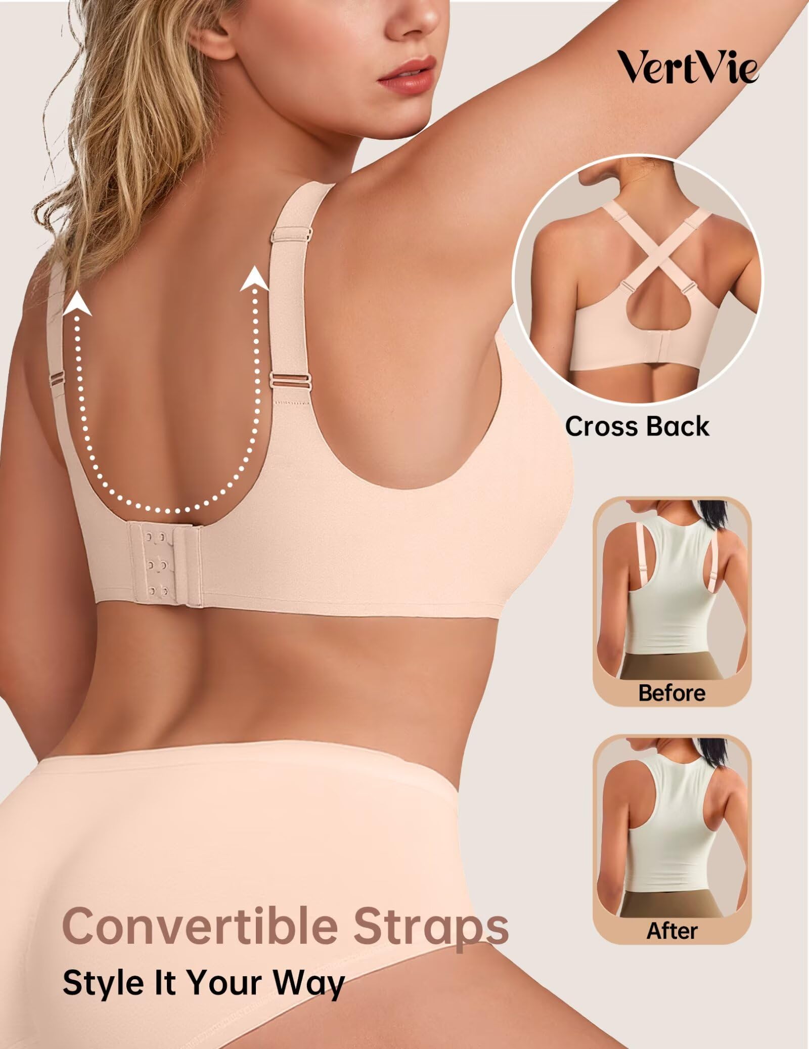 Back Smoothing Bras: These comfortable jelly bras for women feature a 3-column, 4-row hook-and-eye closure and come with a free extender for a customizable fit. The widened side wings effectively smooth out back fat and underarm bulges, without showing through tight-fitting clothing. Easy to pair, they work beautifully under casual tees, elegant blouses, or even worn alone as fashionable bralettes