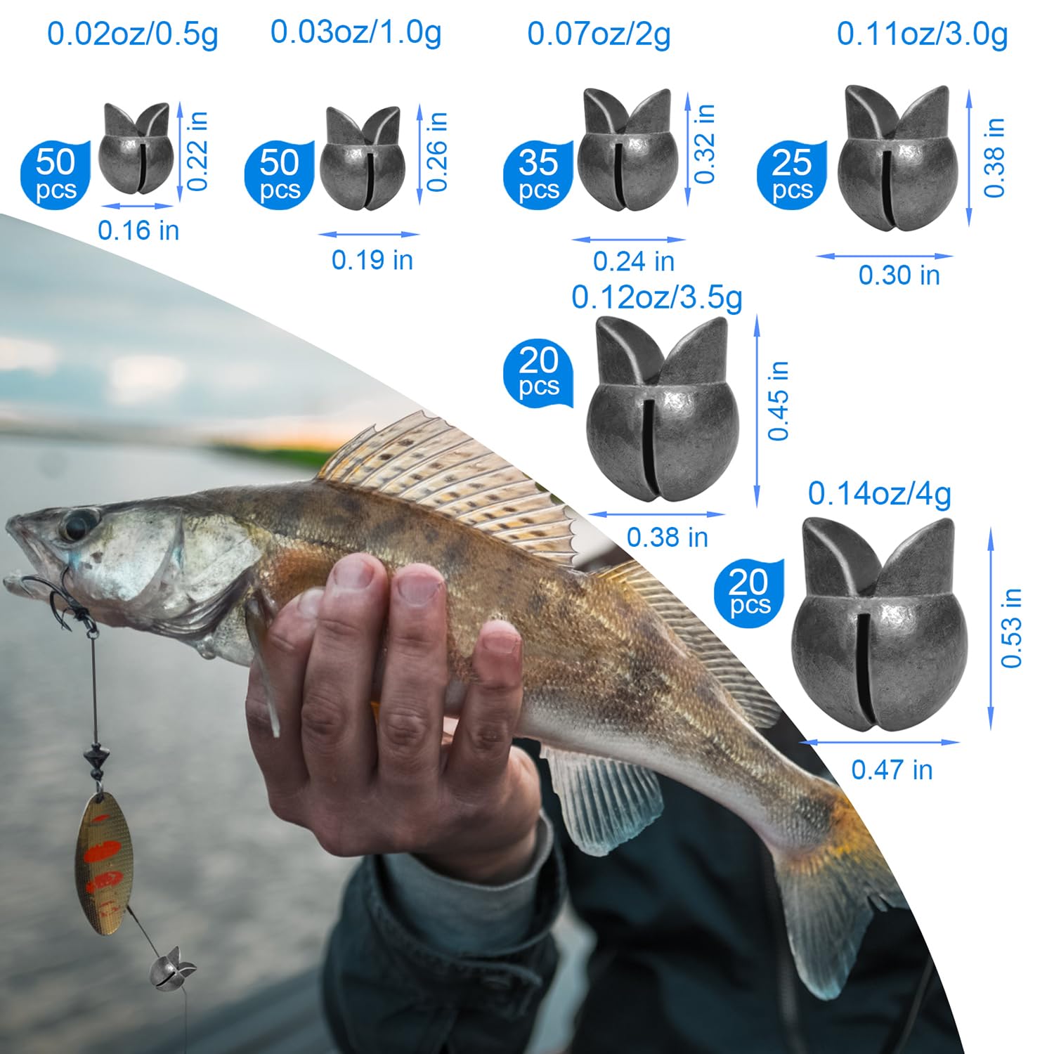 Large Size: Our round sinkers are fully upgraded and enlarged for better fishing. Each package includes 200 pcs in 6 different sizes of fishing weights, 1/64 oz 50PCS, 1/32 oz 50PCS, 1/16 oz 35PCS, 3/32 oz 25PCS, 1/8 oz 20PCS, 9/64 oz 20PCS.